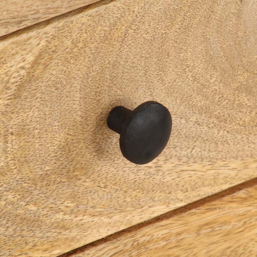 Het televisiemeubel is gemaakt van massief mangohout, dat stabiel, duurzaam en mooi is. Het vakmanschap en de mooi houtnerven maken elk meubelstuk uniek. De 4 lades en 2 open vakken bieden voldoende ruimte om dvd-spelers, gameconsoles, streaming-apparaten en mediadragers netjes georganiseerd te houden.