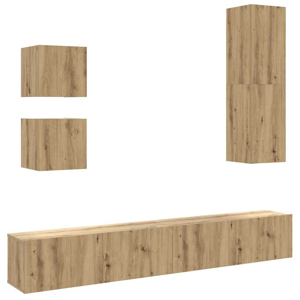 Deze klassieke televisiekastenset is ontworpen om het middelpunt van je kamer te zijn dankzij zijn trendy en toch praktische design.