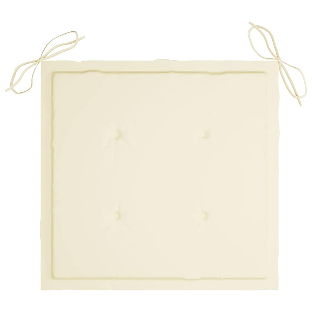 Deze teakhouten meubelset is gemaakt van extreem duurzaam hard teakhout dat gewaterd, in de oven gedroogd en vervolgens fijn geschuurd is om het een zeer glad uiterlijk te geven. Teakhout staat bekend om zijn uitzonderlijke kracht en weerbestendigheid, waardoor het veel geschikter is voor tuinmeubelen dan elke andere houtsoort. Teakhout is de perfecte keuze als je een duurzaam tuinmeubelstuk wilt aanschaffen. Dankzij het geschuurde oppervlak zijn de stoelen weerbestendig en gemakkelijk schoon te maken. Ze kunnen ingeklapt worden om opbergruimte te besparen als ze niet worden gebruikt. De inbegrepen kussens bieden extra comfort. Elk kussen heeft 2 sets touwtjes voor stevige bevestiging aan de stoel.