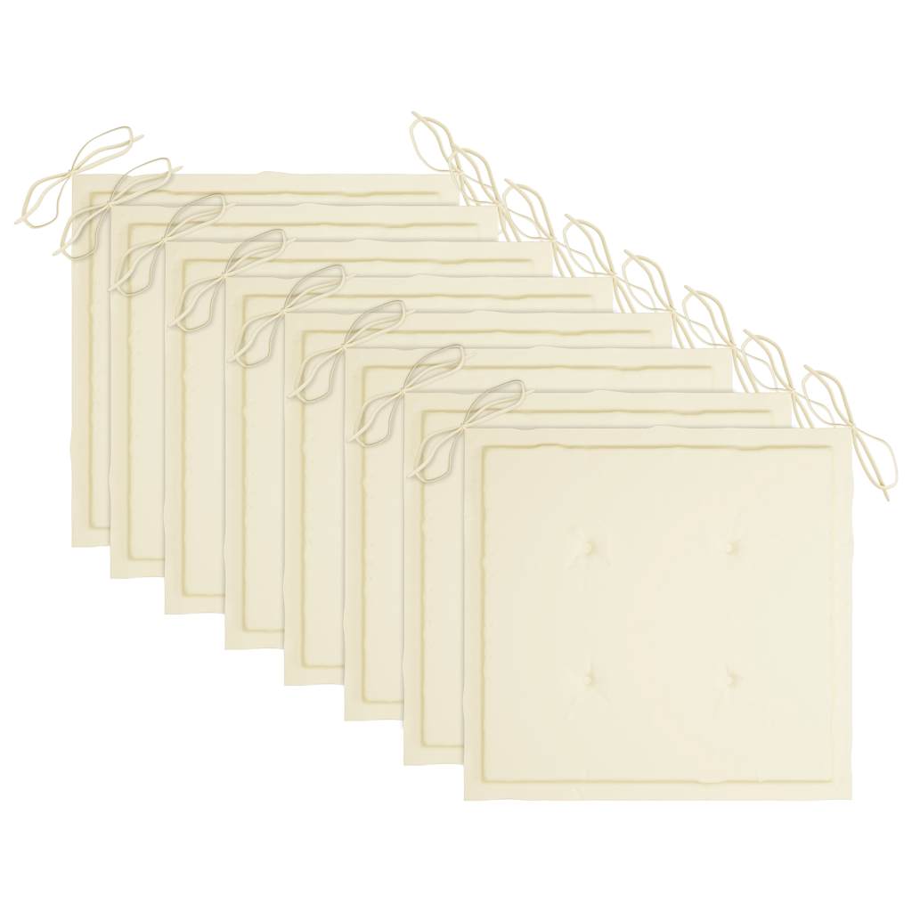 Deze teakhouten meubelset is gemaakt van extreem duurzaam hard teakhout dat gewaterd, in de oven gedroogd en vervolgens fijn geschuurd is om het een zeer glad uiterlijk te geven. Teakhout staat bekend om zijn uitzonderlijke kracht en weerbestendigheid, waardoor het veel geschikter is voor tuinmeubelen dan elke andere houtsoort. Teakhout is de perfecte keuze als je een duurzaam tuinmeubelstuk wilt aanschaffen. Dankzij het geschuurde oppervlak zijn de stoelen weerbestendig en gemakkelijk schoon te maken. Ze kunnen ingeklapt worden om opbergruimte te besparen als ze niet worden gebruikt. De inbegrepen kussens bieden extra comfort. Elk kussen heeft 2 sets touwtjes voor stevige bevestiging aan de stoel.