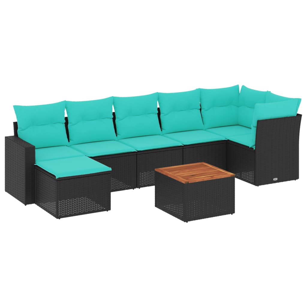 - Materiaal: PE-rattan, gepoedercoat staal en massief acaciahout met olieafwerking
