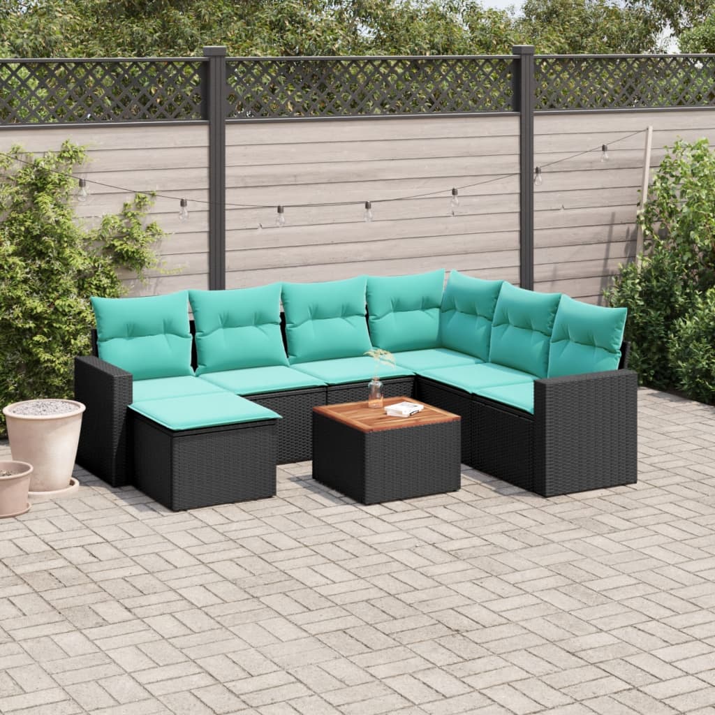 - Materiaal: PE-rattan, gepoedercoat staal en massief acaciahout met olieafwerking