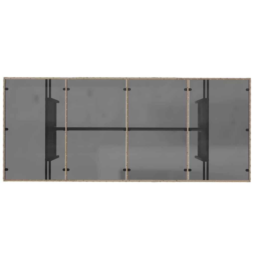 Deze 9-delige tuinset is een geweldige keuze voor elke buitenruimte, of dat nu een patio, balkon of tuin is. Met zijn stijlvolle beige poly rattan ontwerp en glazen blad is deze set niet alleen praktisch maar ook mooi, perfect voor gezellige bijeenkomsten of ontspannen maaltijden.