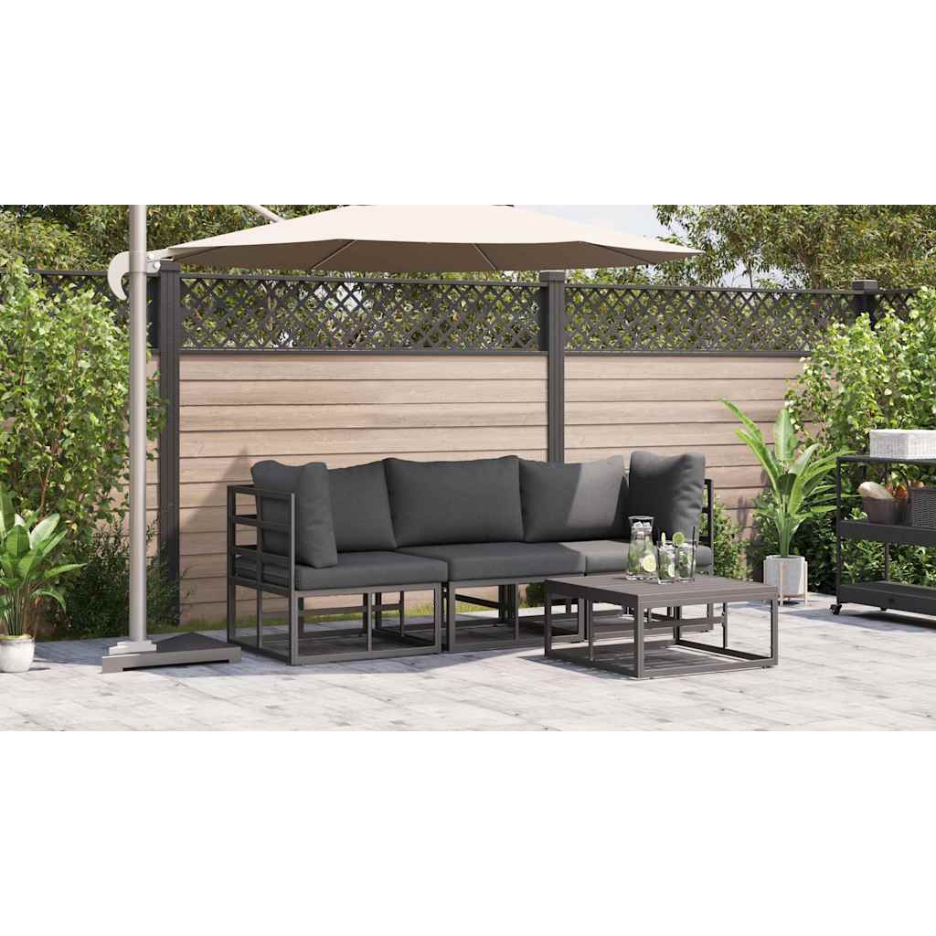Deze moderne set tuinmeubelen heeft een slank en gestroomlijnd ontwerp dat naadloos in elke buitenruimte integreert. Op maat gemaakt voor degenen met oog voor moderne stijl, heeft elk stuk strakke lijnen en een minimalistische uitstraling. Het meubilair kan je tuin, terras of balkon verlevendigen en een uitnodigende setting creëren voor bijeenkomsten of rustige toevluchtsoorden.
