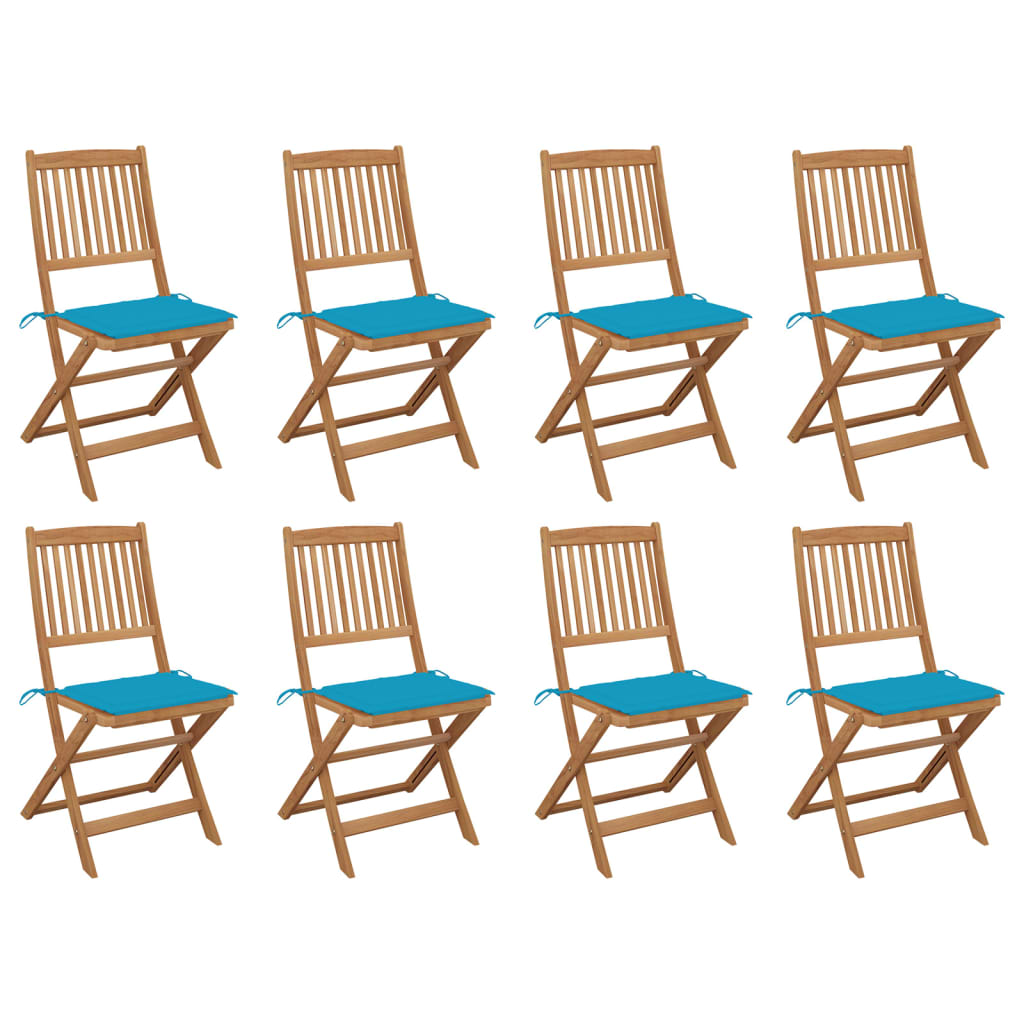 Deze eetstoelen zijn gemaakt van eersteklas acaciahout, een tropisch hardhout, dat weerbestendig en duurzaam is voor jarenlang gebruik. Het geoliede oppervlak is gemakkelijk schoon te maken met een vochtige doek. De stoelen kunnen worden ingeklapt om ruimte te besparen wanneer ze niet in gebruik zijn. Bovendien zorgen de meegeleverde kussens voor extra comfort. Elk kussen heeft 2 sets touwtjes om het stevig aan de stoel te bevestigen.