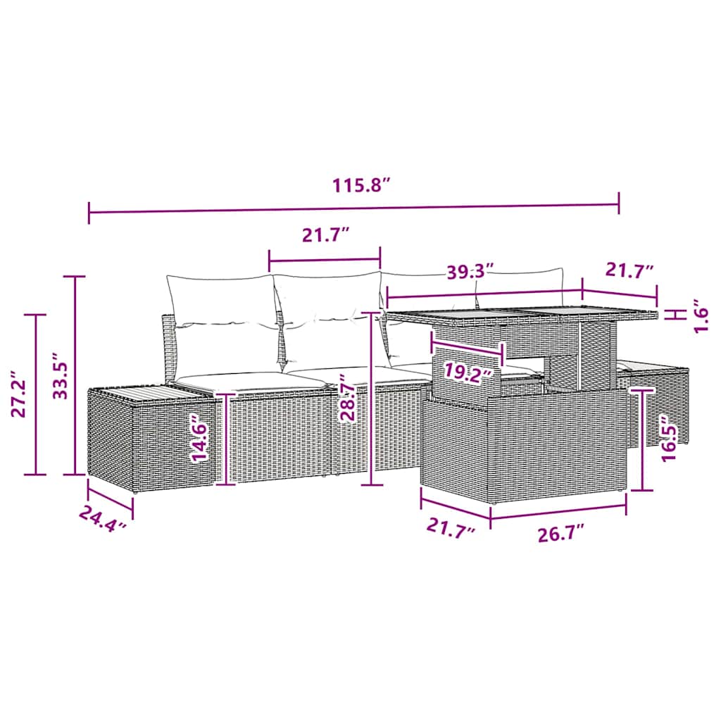 - Inbegrepen onderdelen: Met twee zijbanken met geïntegreerde opslag, twee middenzitplaatsen en een tuintafel, zorgt de set voor comfortabele en handige indelingen voor bijeenkomsten. Elk stuk is zorgvuldig ontworpen om ontspanning en bruikbaarheid te verbeteren, met doordachte opbergoplossingen voor een opgeruimde ruimte.