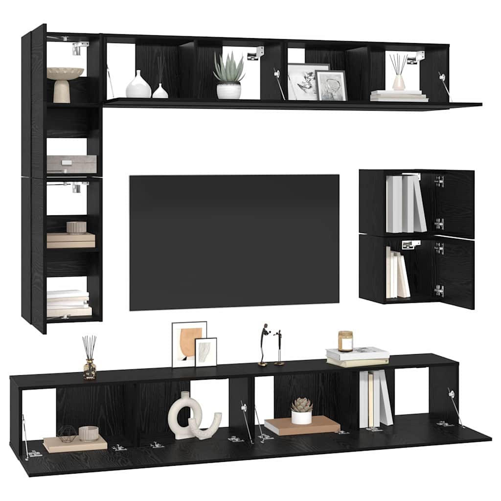 Deze TV-kastset met opslag is een modulaire opslagsoplossing die specifiek is ontworpen om je woonruimte stijlvol en efficiënt te organiseren. Met de configuratie van kubusopbergplanken biedt deze set een rechthoekig en opaak ontwerp dat functionaliteit combineert met moderne esthetische aantrekkingskracht. Perfect voor organisatie in de woonkamer, het presenteert een chique opstelling voor zowel entertainment systemen als decoratieve items, waardoor er een schone en opgeruimde omgeving ontstaat.