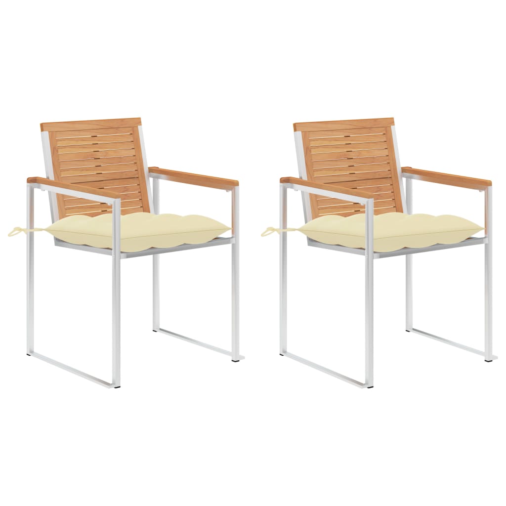 Dit teakhouten meubelstuk is gemaakt van extreem duurzaam teakhout dat gewaterd, in de oven gedroogd en vervolgens fijn geschuurd is om het een zeer glad uiterlijk te geven. Teakhout staat bekend om zijn uitzonderlijke kracht en weerbestendigheid, waardoor het veel geschikter is voor tuinmeubelen dan elke andere houtsoort. Teakhout is de perfecte keuze als je een duurzaam tuinmeubelstuk wilt aanschaffen. De stoelen zijn gemaakt van hoogwaardig roestvrij staal 304 waardoor ze roestbestendig en gemakkelijk schoon te maken zijn. Elk kussen biedt extra comfort tijdens het loungen. Elk kussen heeft tevens twee sets touwtjes voor stevige bevestiging aan de tuinstoel.