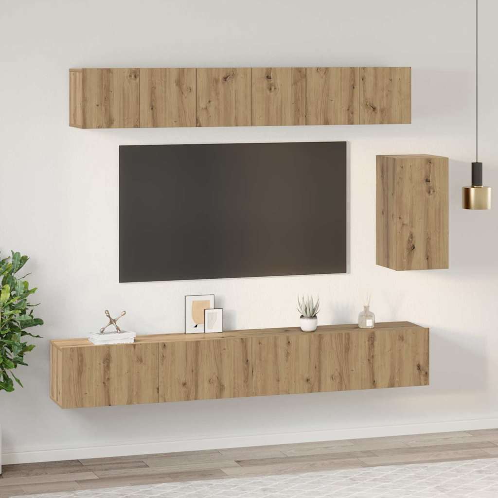 - Gemaakt van bewerkt hout. Deze kastset, gemaakt van premium bewerkt hout, balanceert duurzaamheid met een modern ontwerp. Deze materiaalkeuze zorgt niet alleen voor een robuust raamwerk, maar biedt ook een glad oppervlak dat de esthetische aantrekkingskracht in elke woonkamer verhoogt.