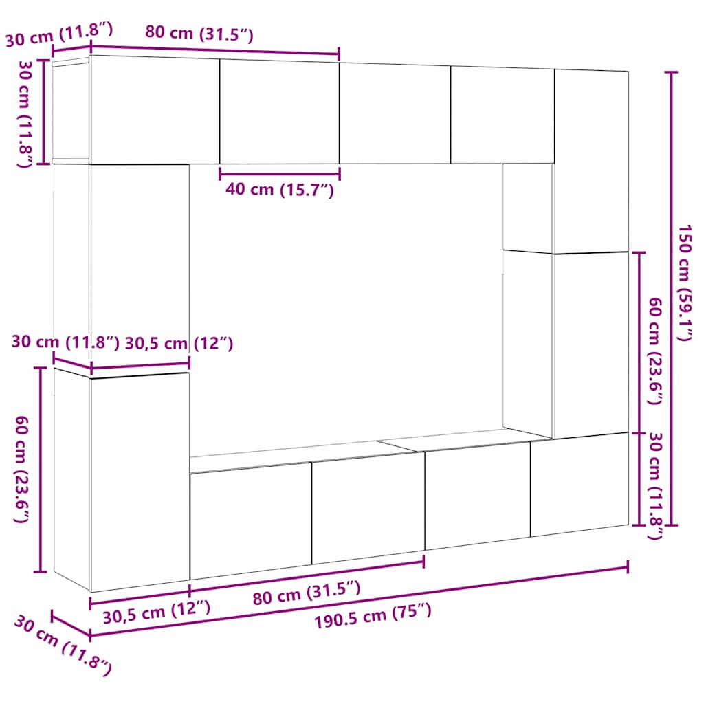De TV-kastset met opslag biedt een elegante oplossing voor moderne huizen. Met zijn strakke lijnen en open-space ontwerp combineert het stijl en functionaliteit om een georganiseerde woonkamer te creëren. De modulaire planken met kubusvormige compartimenten bieden voldoende opslagruimte, terwijl de afgewerkte achterkant zorgt voor een strakke, gepolijste look vanuit elke hoek.