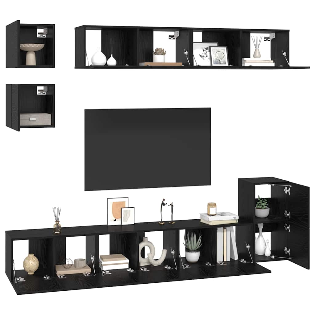 Deze TV-kastset met opslag is een modulaire opslagsoplossing die specifiek is ontworpen om je woonruimte stijlvol en efficiënt te organiseren. Met de configuratie van kubusopbergplanken biedt deze set een rechthoekig en opaak ontwerp dat functionaliteit combineert met moderne esthetische aantrekkingskracht. Perfect voor organisatie in de woonkamer, het presenteert een chique opstelling voor zowel entertainment systemen als decoratieve items, waardoor er een schone en opgeruimde omgeving ontstaat.