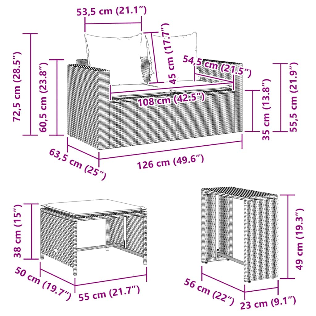 - Stapelbaar voor ruimtebesparing: deze bankstel voor buiten kan gemakkelijk worden gestapeld tot een compacte rechthoekige structuur, waardoor hij gemakkelijk kan worden opgeborgen en ideaal is om de ruimte te maximaliseren wanneer hij niet in gebruik is.