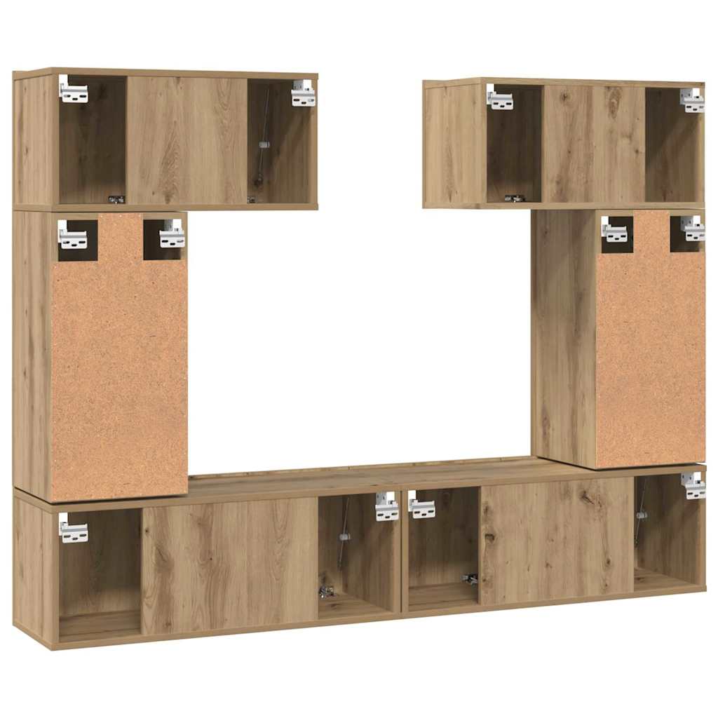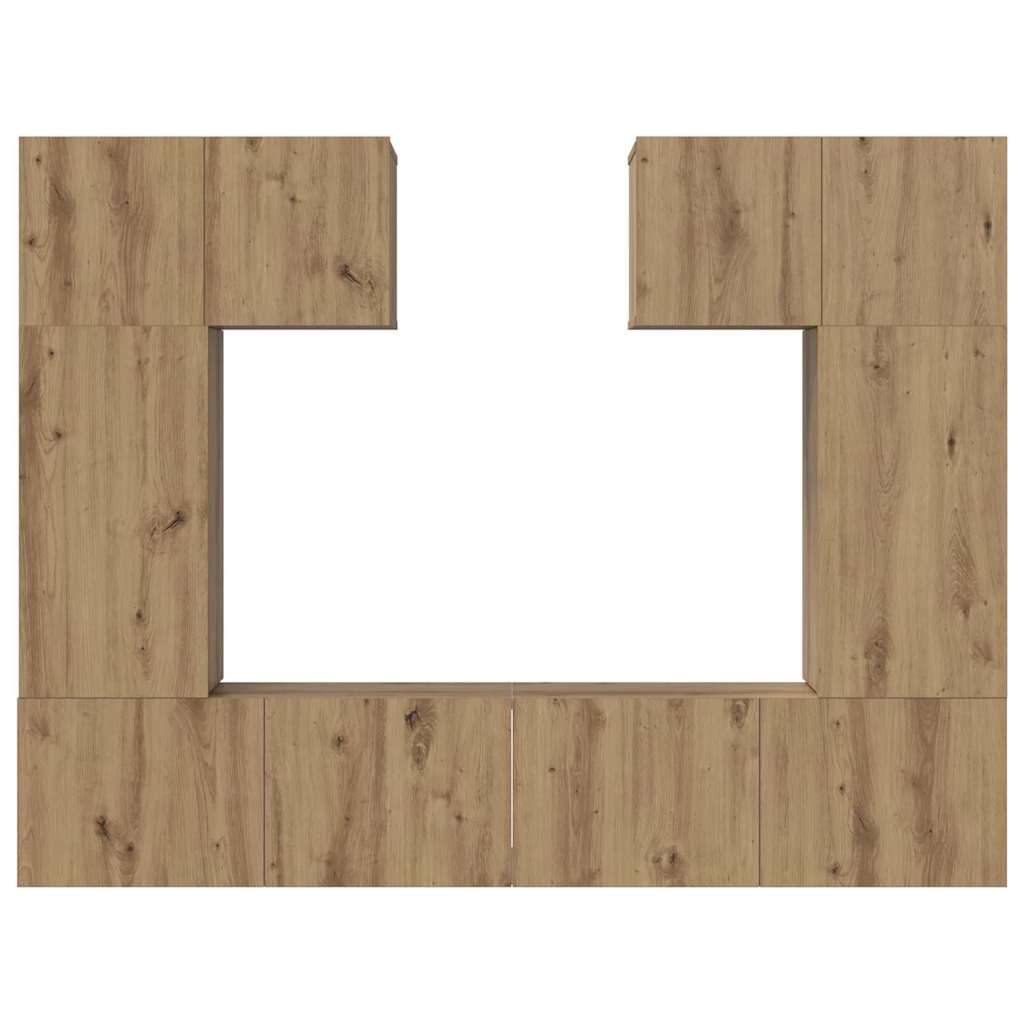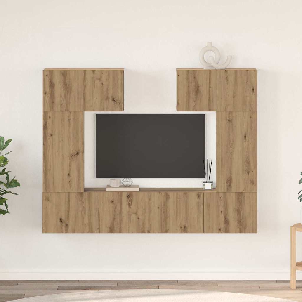 - Materialen: Volledig vervaardigd uit bewerkt hout, deze TV-cabinet set toont een solide, uniforme uitstraling die zowel slank als duurzaam is. Het consistente oppervlak van het materiaal voorkomt vervorming en schade, waardoor langdurige elegantie en functionaliteit gegarandeerd zijn. Deze constructie levert een kast op die chic en robuust blijft bij dagelijks gebruik, perfect voor drukke huishoudens.