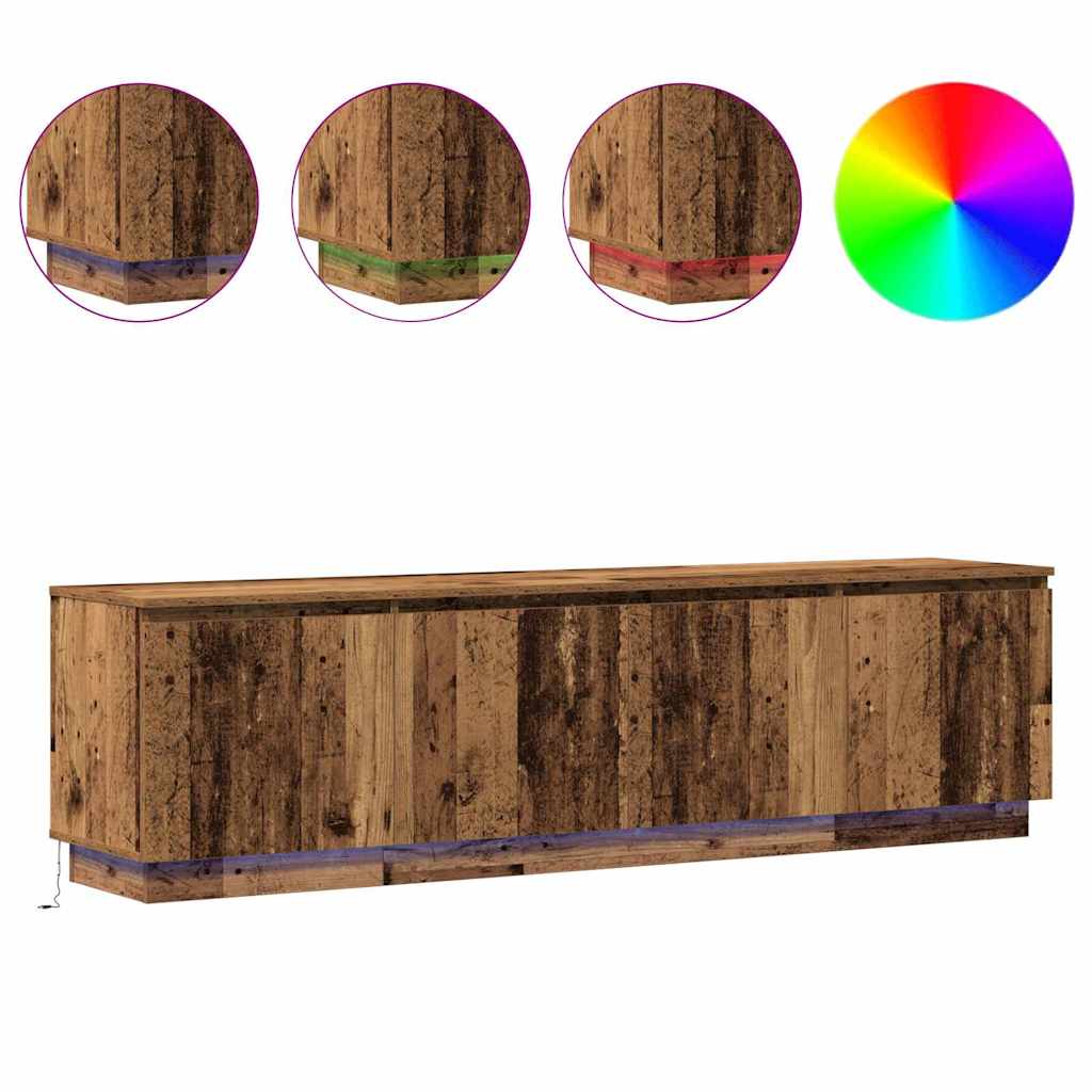 Deze TV kast combineert rustieke charme met nuttige functies en is daarmee een super leuk middelpunt voor je woonkamer. De mooie afwerking in oud hout en de ingebouwde LED-verlichting zorgen voor een warme sfeer, perfect om je gadgets in de schijnwerpers te zetten en je huis mooi te maken.