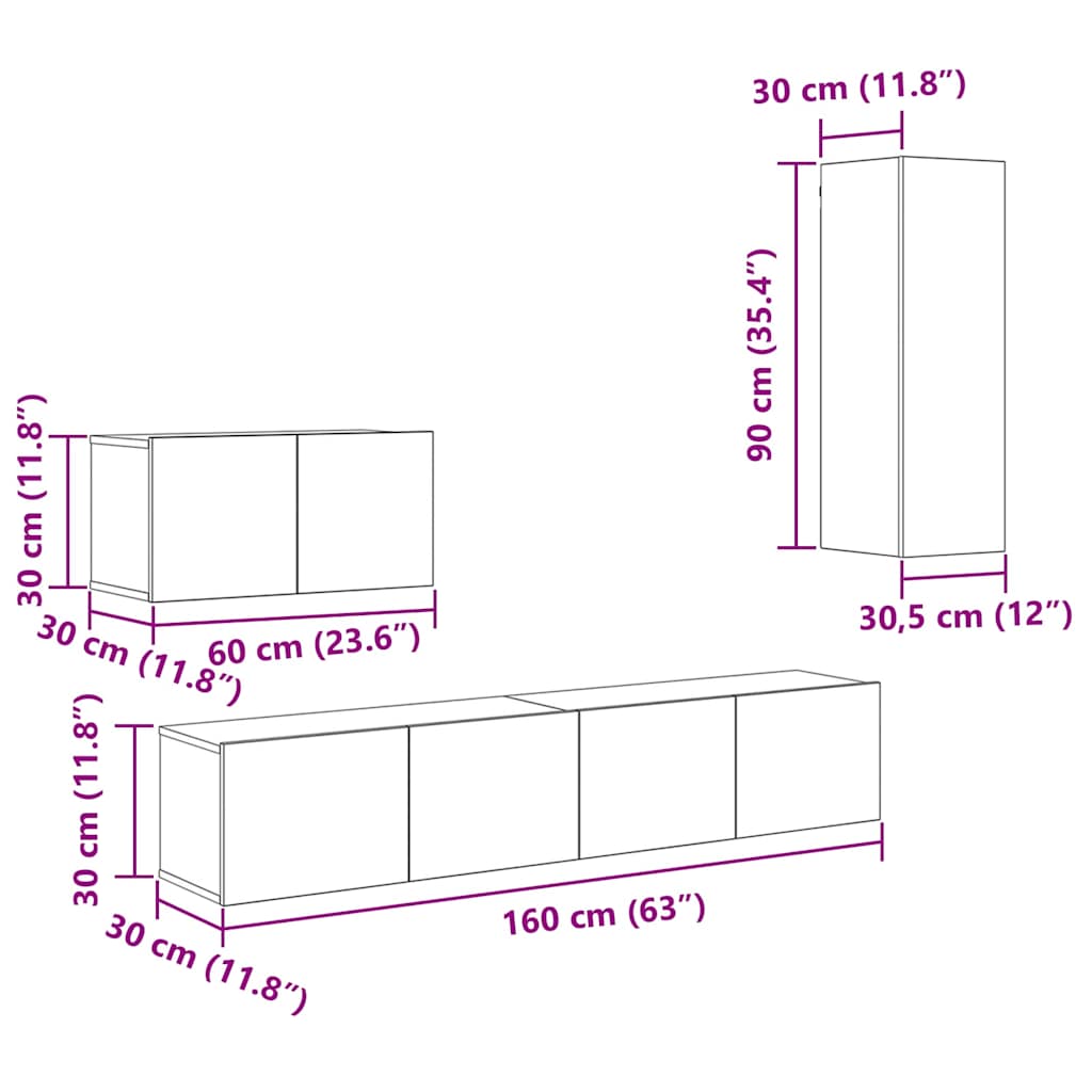 - 1 x Wandkast voor TV (S), 2 x Wandkast voor TV (M), 1 x Wandkast voor TV (L)