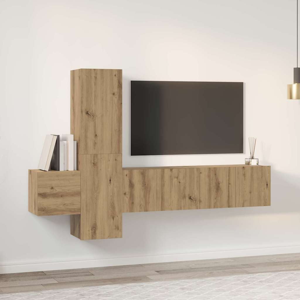 - Wandgemonteerde planken: De set beschikt over meerdere wandgemonteerde planken, wat veelzijdige opslagoplossingen biedt voor boeken, decoraties of elektronische apparaten. Deze keuze in ontwerp bespaart niet alleen vloeroppervlak, maar voegt ook een moderne flair toe aan je woonruimte. Items zijn gemakkelijk bereikbaar dankzij het open ontwerp.