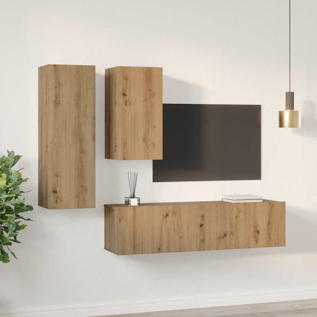 Deze wandgemonteerde tv-kastenset combineert functionaliteit met een gestroomlijnd modern ontwerp, waardoor het perfect past in elke hedendaagse woonkamer. Zijn strakke lijnen en minimalistische stijl benadrukken de eenvoud en elegantie die het aan je ruimte brengt. Met zijn wandgemonteerde ontwerp bespaart deze kast niet alleen vloeroppervlakte, maar biedt ook voldoende opslag voor media-apparaten, boeken en decoratieve items. Het is gemaakt van bewerkt hout om duurzaamheid en langdurig gebruik te waarborgen, terwijl het een verfijnde esthetiek behoudt die geschikt is voor verschillende interieurstijlen. Of je nu je woonkamerbenodigdheden wilt organiseren of de visuele aantrekkingskracht van je ruimte wilt vergroten, deze tv-kastenset biedt zowel veelzijdigheid als verfijning.