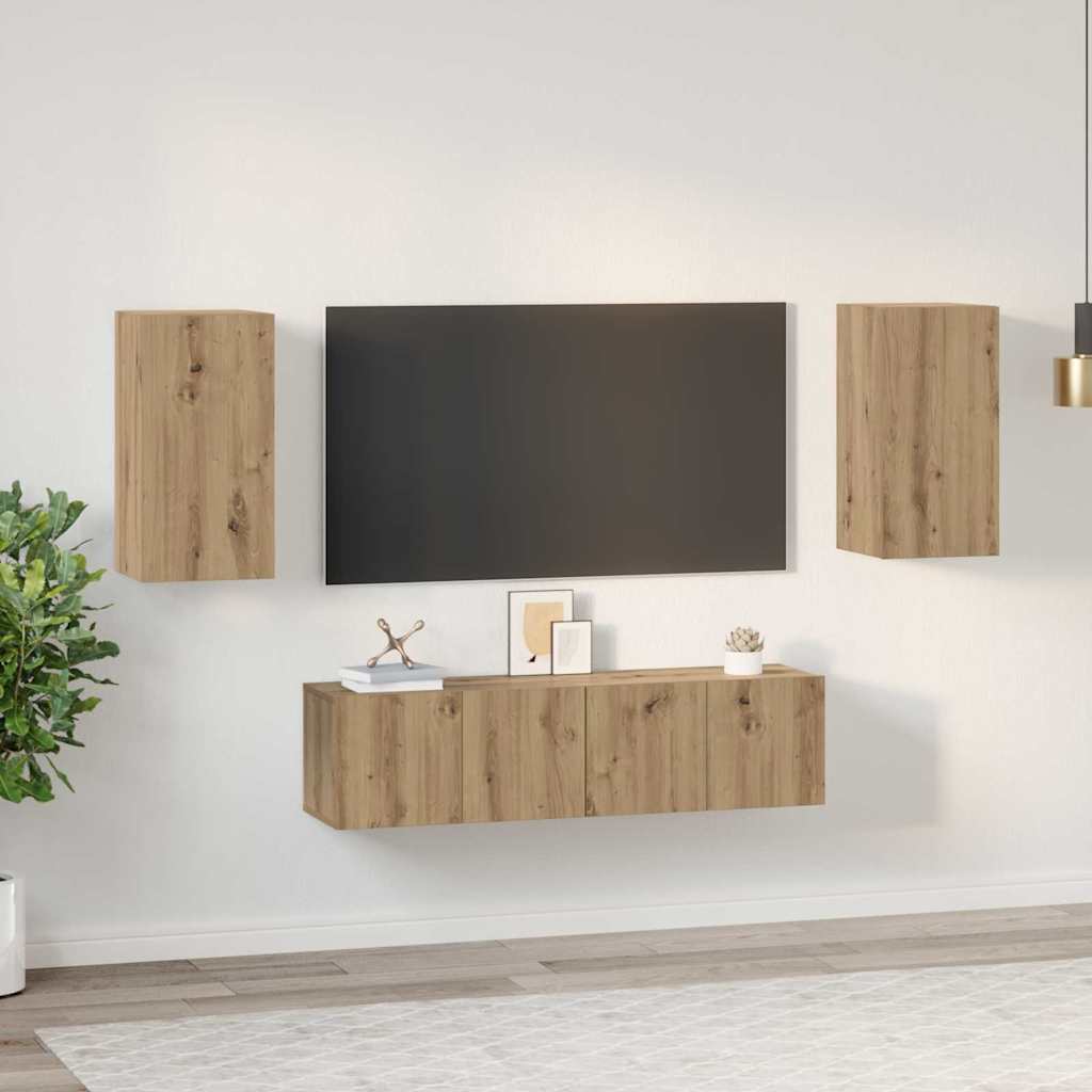 - Constructie van Engineered Wood: Gemaakt van engineered wood, is deze TV-kast zowel robuust als slijtvast. Dit materiaal zorgt voor een gladde, uniforme textuur en biedt aanzienlijke duurzaamheid tegen dagelijks gebruik, perfect voor langdurig gebruik zonder in te boeten op stijlvolle esthetiek.