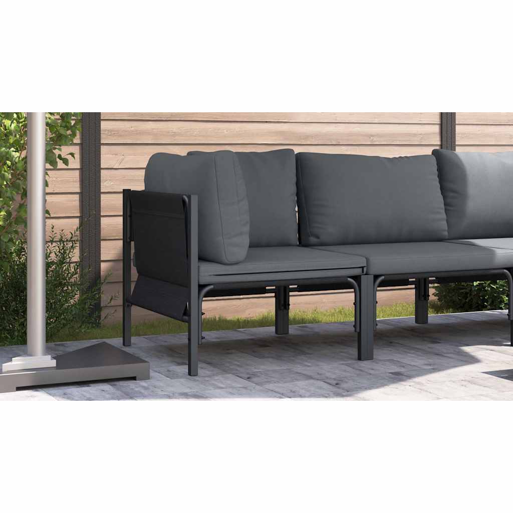 Deze Outdoor Sectional Sofa Set heeft een modern karakter met zijn eenvoudige ontwerp en strakke lijnen. Het biedt flexibele zitruimte voor je balkon of terras. De gepoedercoate afwerking zorgt voor een strakke uitstraling die goed past in elke buitenruimte. Gemaakt met comfort in gedachten, is het ideaal voor een relaxed moment alleen of gezellige tijd met vrienden en familie.
