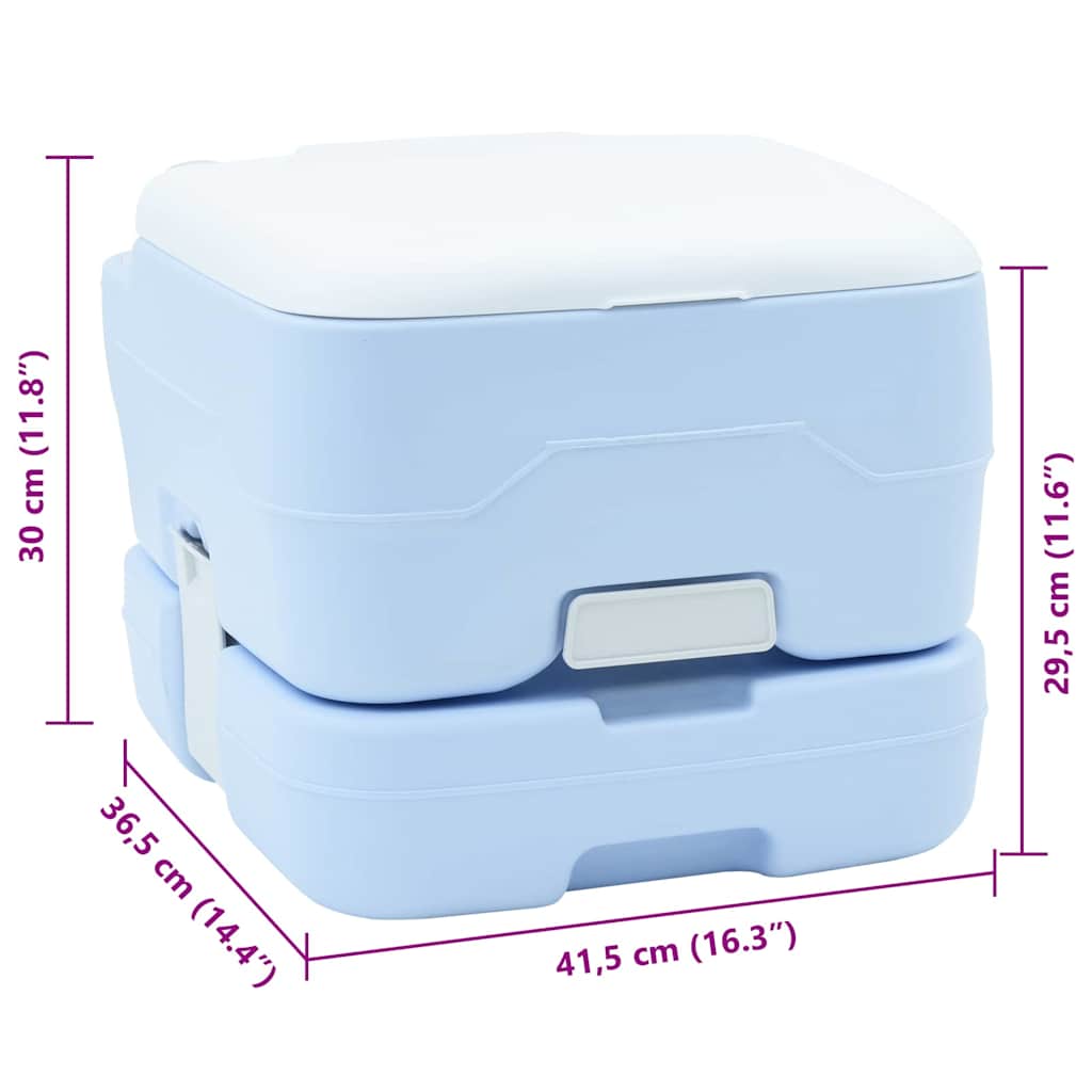 Dit draagbare toilet is een fantastische oplossing voor iedereen die een betrouwbare toilet nodig heeft tijdens het kamperen. Het heeft een strak rechthoekig ontwerp en een lichtblauw en wit kleurenschema, wat het zowel functioneel als stijlvol maakt, perfect voor buiten.