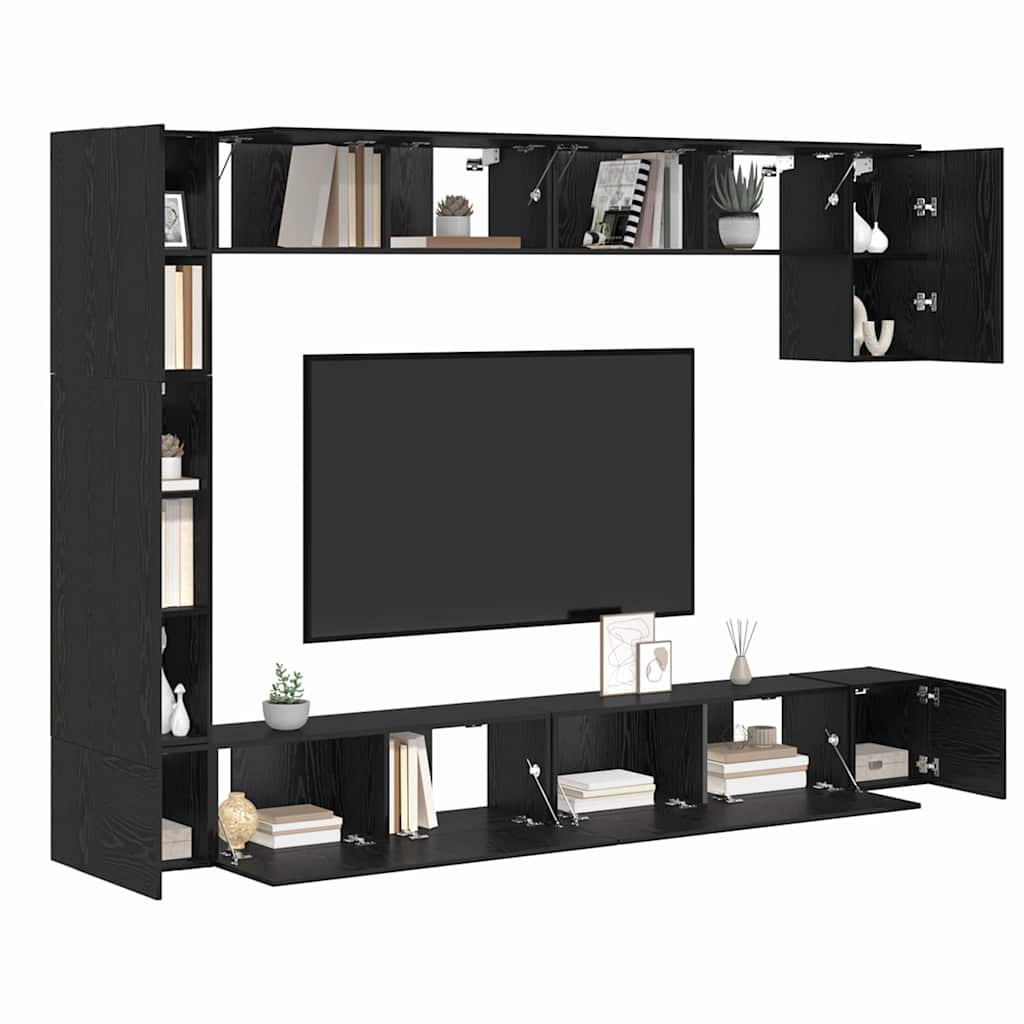 - Functionele componenten De set bevat muurbevestigde tv-kasten in verschillende maten, met scharnierdeuren voor veilige opslag. Elk stuk heeft meerdere planken, ideaal om je multimedia-apparaten, gadgets en decoraties op te bergen. Je kunt alles herschikken zoals jij dat wilt.