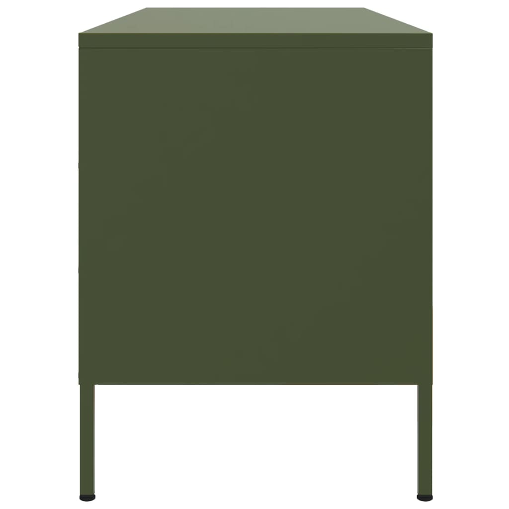 Dit tv-meubel met een industriële stijl is een tijdloze toevoeging aan je woon- of slaapkamer.