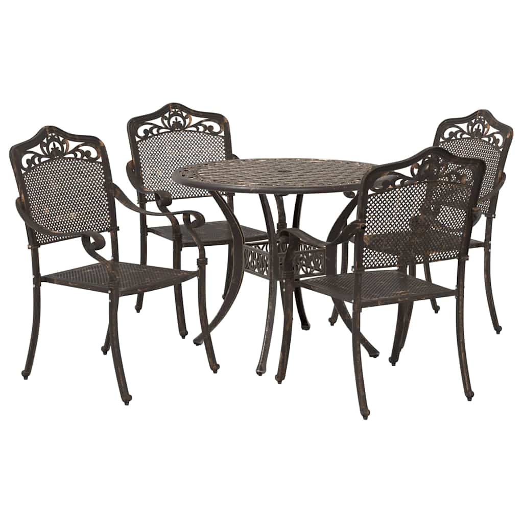 - Kwaliteitsmaterialen: Gemaakt van sterk gegoten aluminium, deze eetset is gebouwd om lang mee te gaan, weerstaat slijtage en blijft mooi, zelfs bij wisselend weer. Het aluminium frame zorgt voor stabiliteit en een mooi uiterlijk, wat bijdraagt aan de duurzaamheid.