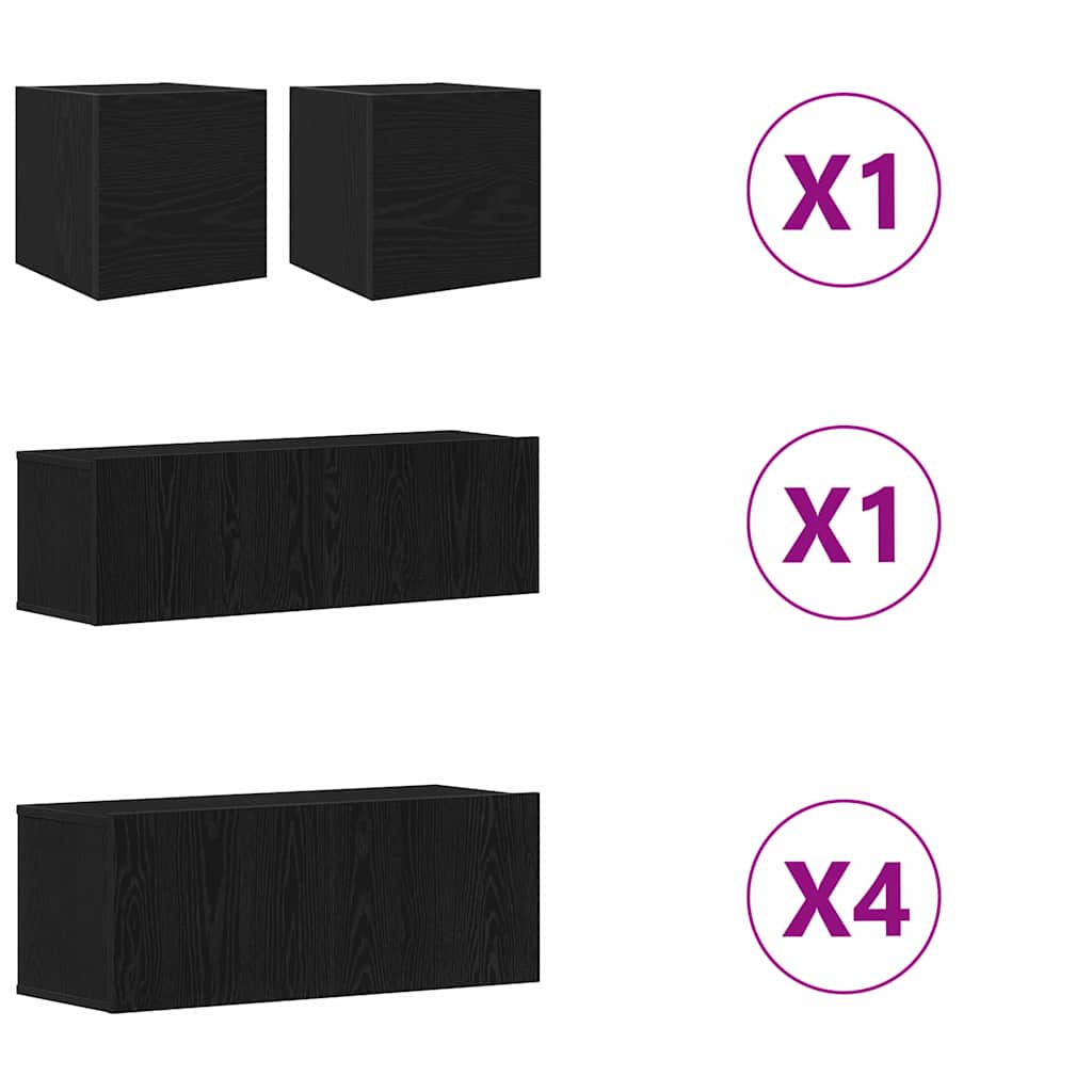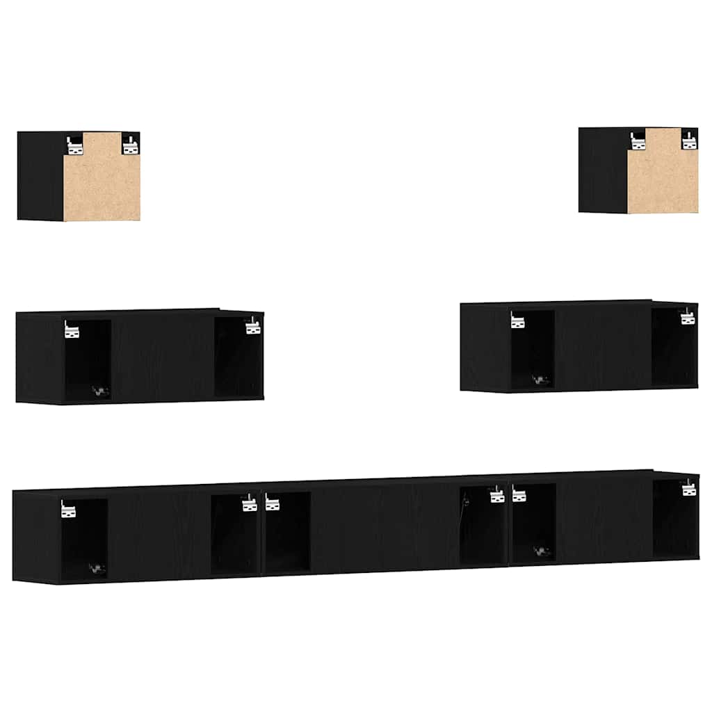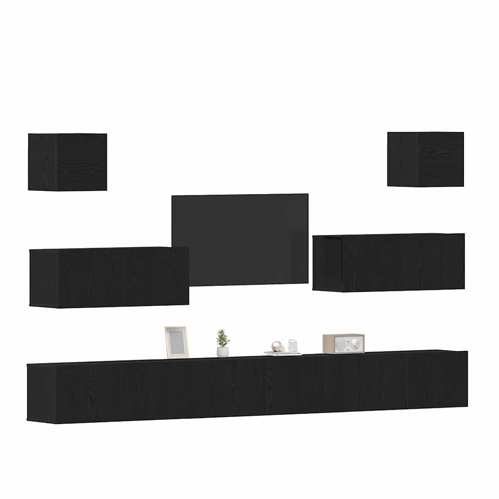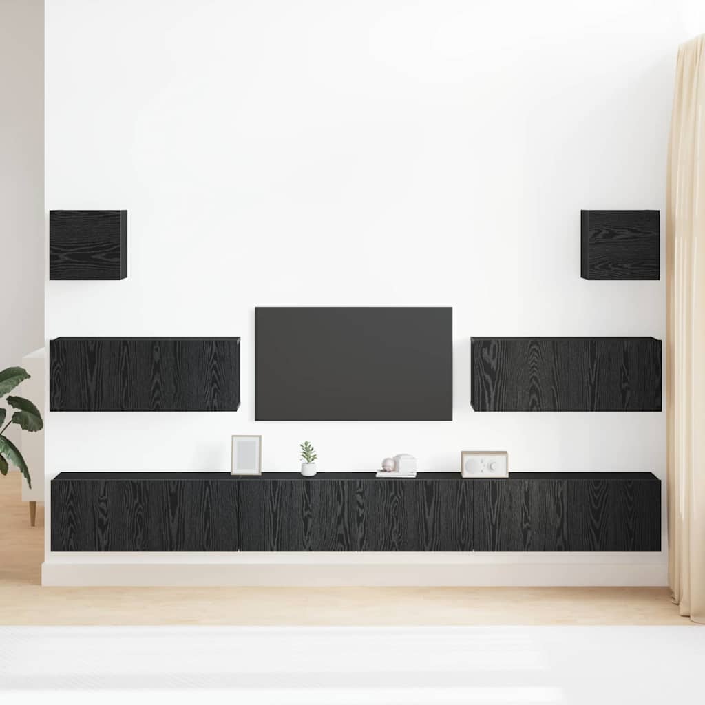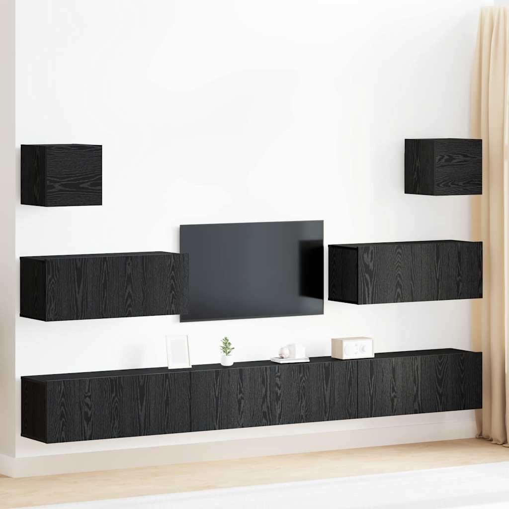 Geef je leefruimte een boost met de vidaXL 7-delige TV-kast Set. Het heeft een strakke zwarte eiken afwerking en een modern, minimalistisch design.