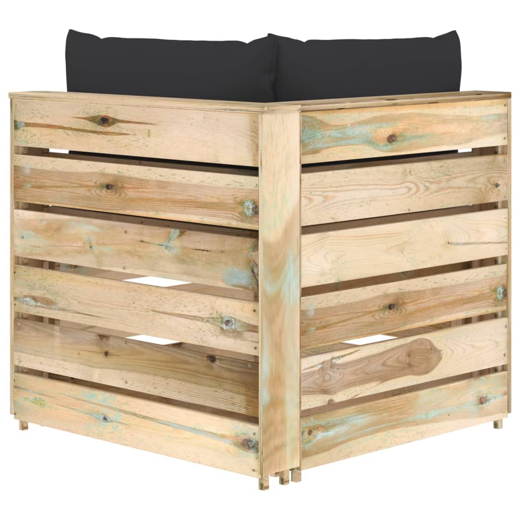 vidaXL Hoekbank sectioneel met kussens groen geïmpregneerd hout
