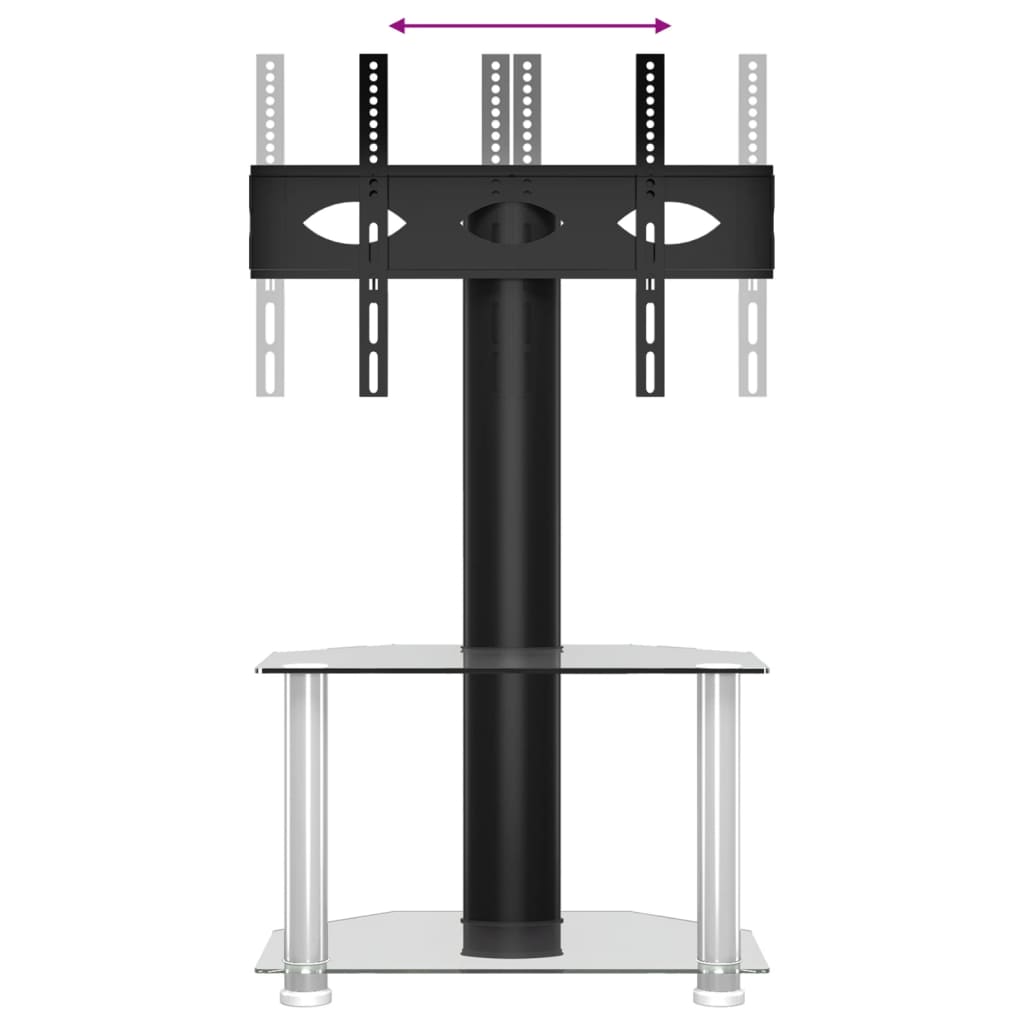 - Zorg ervoor dat de breedte van je tv op de tv-standaard past en dat de hoogte van de tv-beugel tot de bovenste glazen tafel ook geschikt is voor je tv.