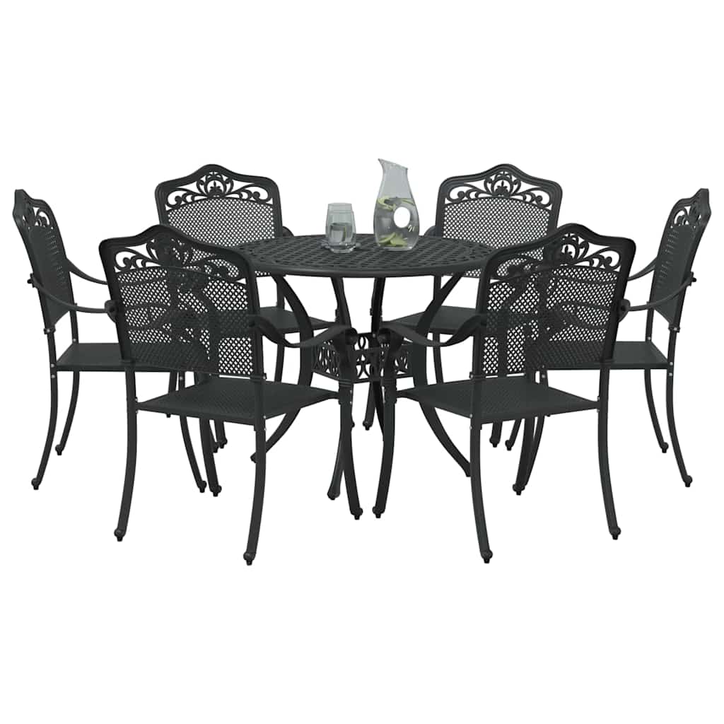 Deze mooie tuinset is gemaakt van sterk gegoten aluminium, wat het een klassieke look geeft die perfect past in je tuin of op je balkon. Het heeft klassieke details die wat verfijning meebrengen, waardoor het een prachtig middelpunt is voor buiten diners en bijeenkomsten in de lente en zomer. Stel je voor dat je gezellige avonden hebt met vrienden en familie, dineren onder de sterren, omringd door deze mooie mix van stijl en praktische gebruik!