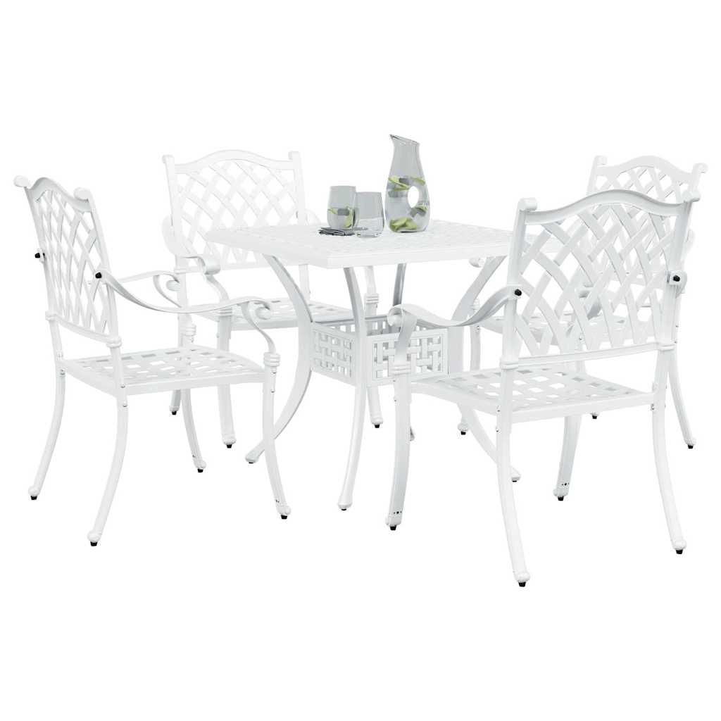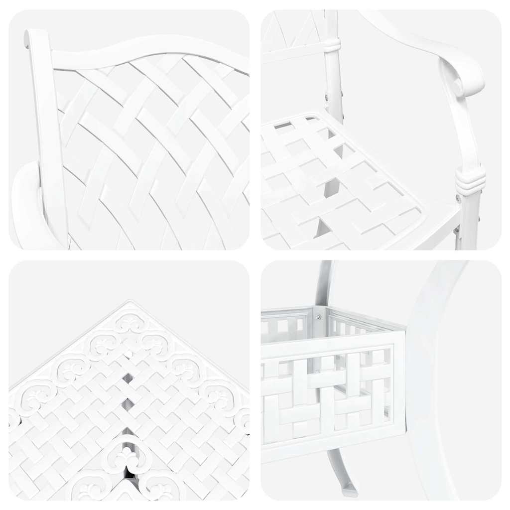 - Kwaliteitsmaterialen: Deze tuinset is gemaakt van gegoten aluminium en heeft een stevige, gestructureerde oppervlakte die fijn aanvoelt. De aluminiumconstructie is sterk genoeg voor buitengebruik, zodat hij jarenlang mooi blijft in elke tuin.
