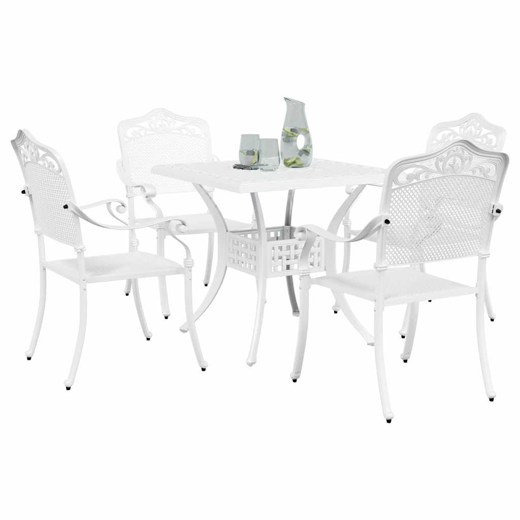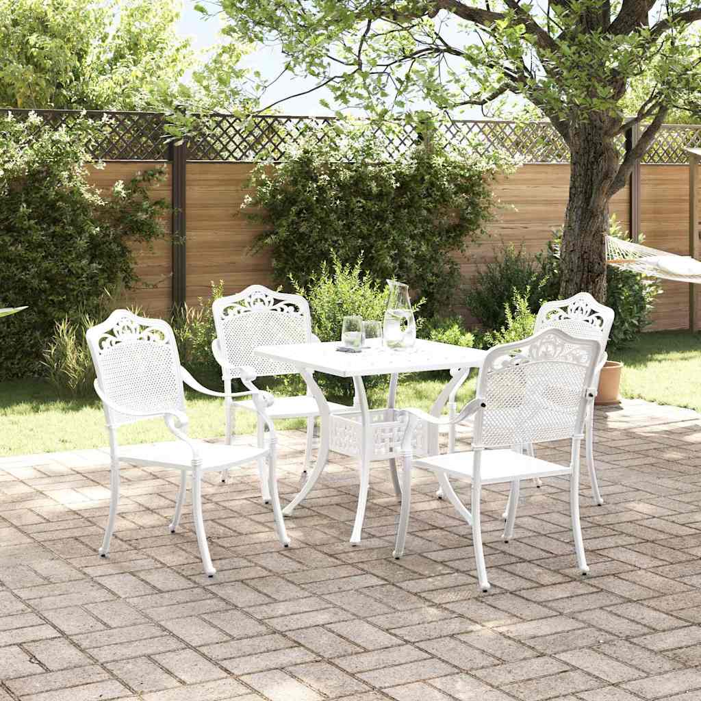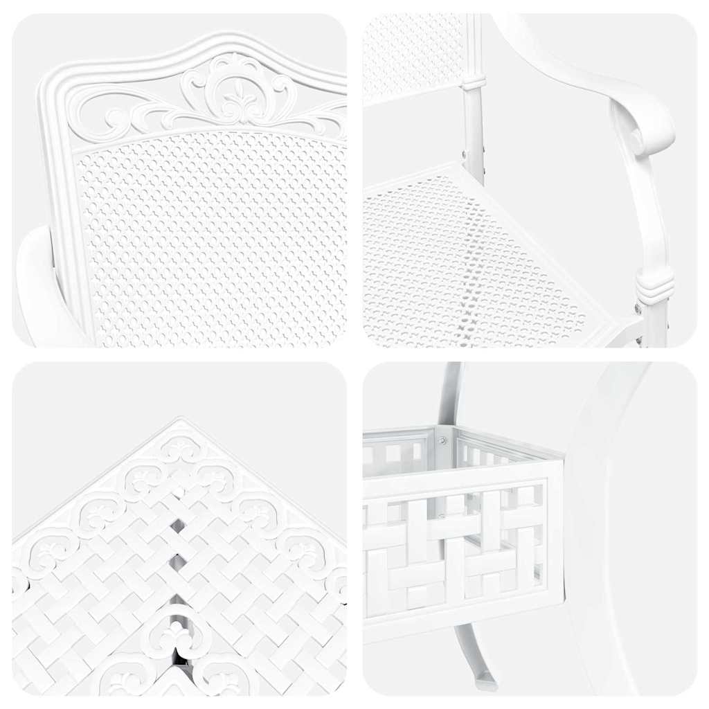 - Kwaliteitsmaterialen: Deze tuinset is gemaakt van gegoten aluminium en heeft een stevige, gestructureerde oppervlakte die fijn aanvoelt. De aluminiumconstructie is sterk genoeg voor buitengebruik, zodat hij jarenlang mooi blijft in elke tuin.