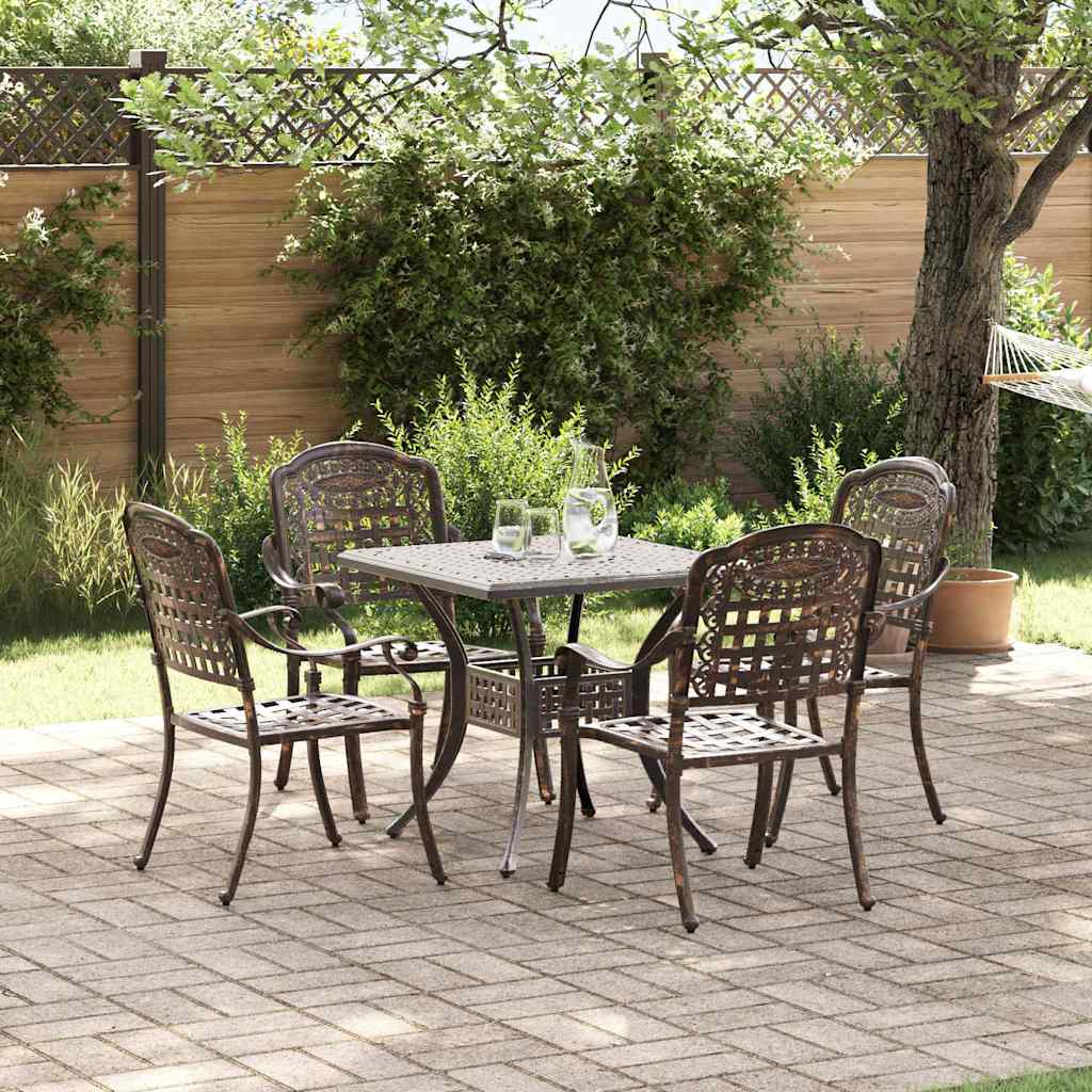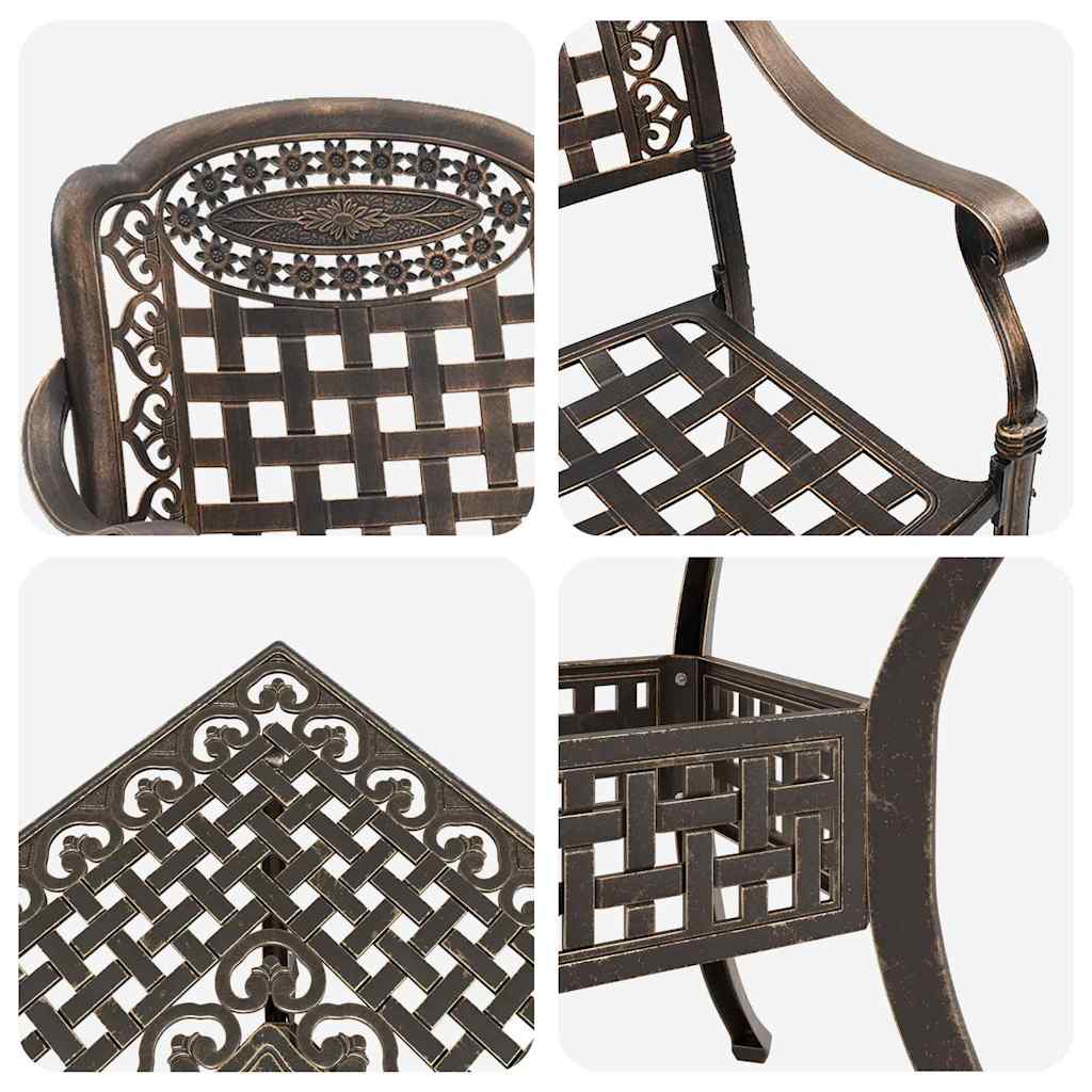 - Kwaliteitsmaterialen: Deze tuinset is gemaakt van gegoten aluminium en heeft een stevige, gestructureerde oppervlakte die fijn aanvoelt. De aluminiumconstructie is sterk genoeg voor buitengebruik, zodat hij jarenlang mooi blijft in elke tuin.