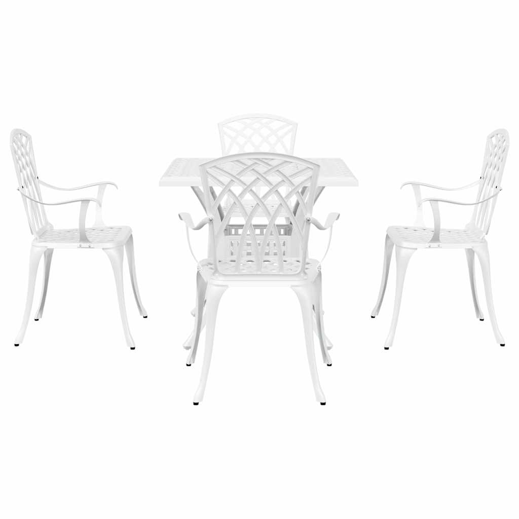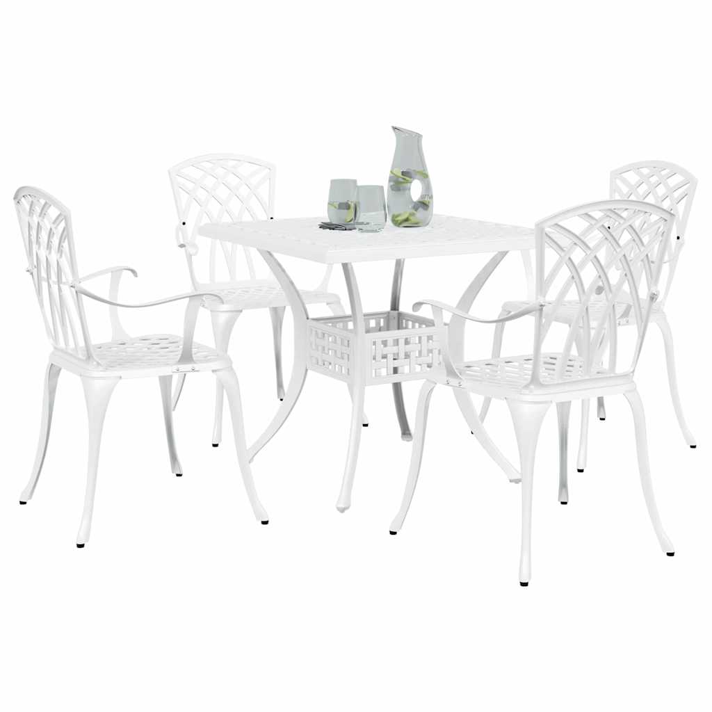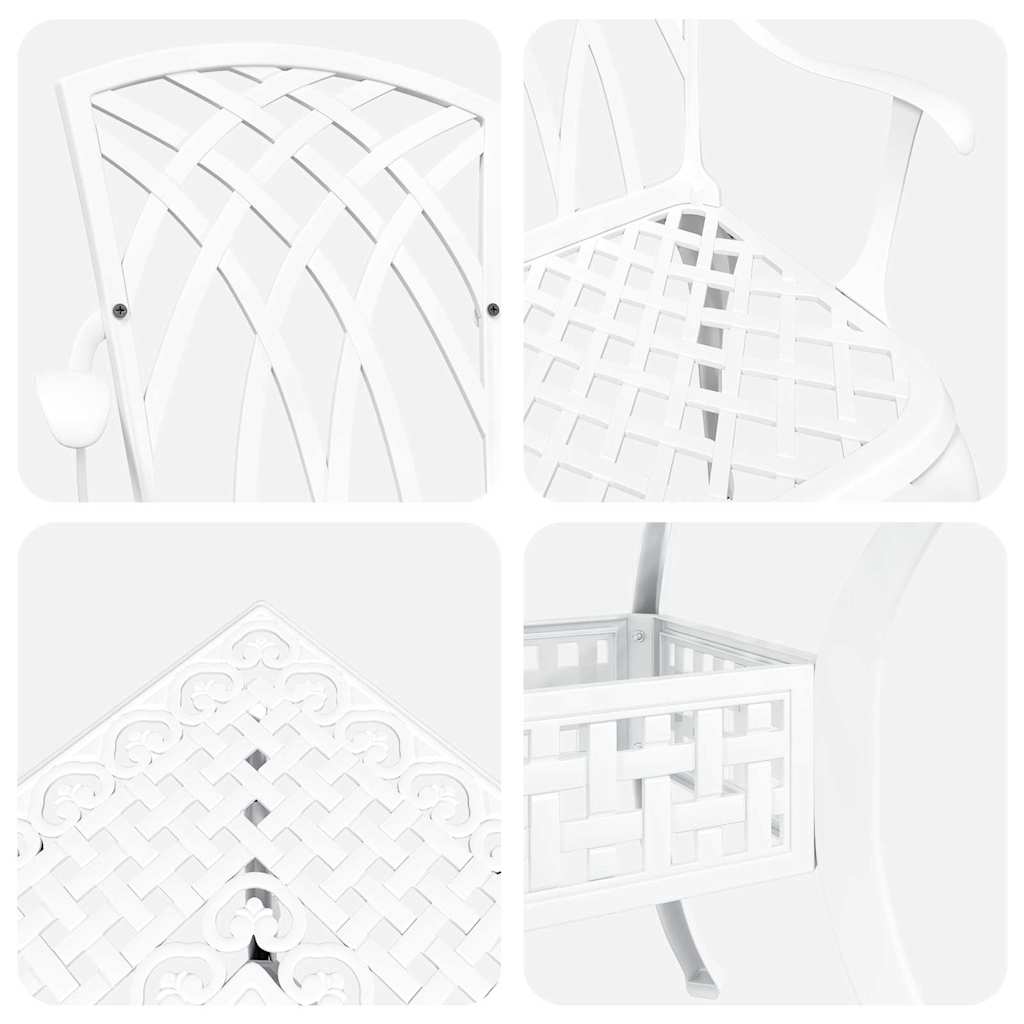 - Kwaliteitsmaterialen: Deze tuinset is gemaakt van gegoten aluminium en heeft een stevige, gestructureerde oppervlakte die fijn aanvoelt. De aluminiumconstructie is sterk genoeg voor buitengebruik, zodat hij jarenlang mooi blijft in elke tuin.
