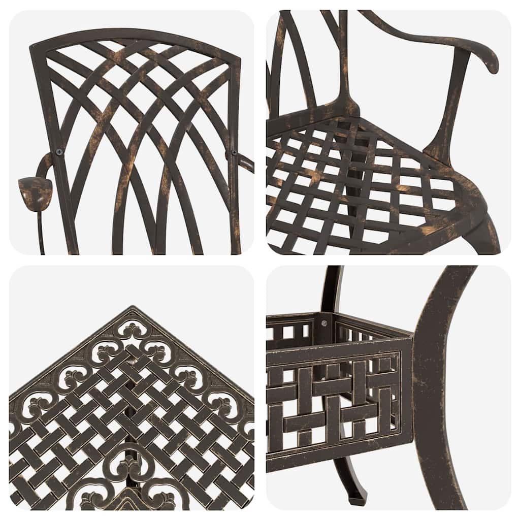 - Kwaliteitsmaterialen: Deze tuinset is gemaakt van gegoten aluminium en heeft een stevige, gestructureerde oppervlakte die fijn aanvoelt. De aluminiumconstructie is sterk genoeg voor buitengebruik, zodat hij jarenlang mooi blijft in elke tuin.