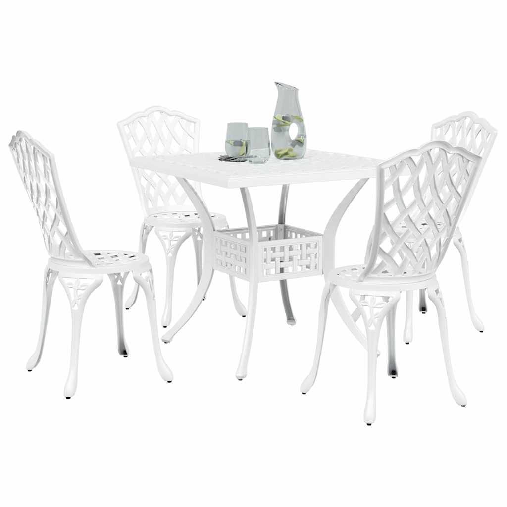 - Kwaliteitsmaterialen: Deze tuinset is gemaakt van gegoten aluminium en heeft een stevige, gestructureerde oppervlakte die fijn aanvoelt. De aluminiumconstructie is sterk genoeg voor buitengebruik, zodat hij jarenlang mooi blijft in elke tuin.