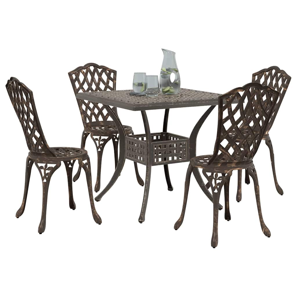 - Kwaliteitsmaterialen: Deze tuinset is gemaakt van gegoten aluminium en heeft een stevige, gestructureerde oppervlakte die fijn aanvoelt. De aluminiumconstructie is sterk genoeg voor buitengebruik, zodat hij jarenlang mooi blijft in elke tuin.