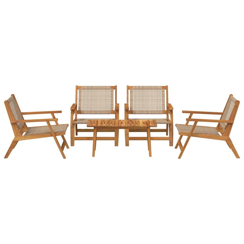 - Duurzaam massief acaciahout: De hele set, inclusief poten, frame en oppervlak, is gemaakt van massief acaciahout, dat bekend staat om zijn stevigheid. Dit betekent dat de meubels het weer kunnen weerstaan zonder hun charme te verliezen.