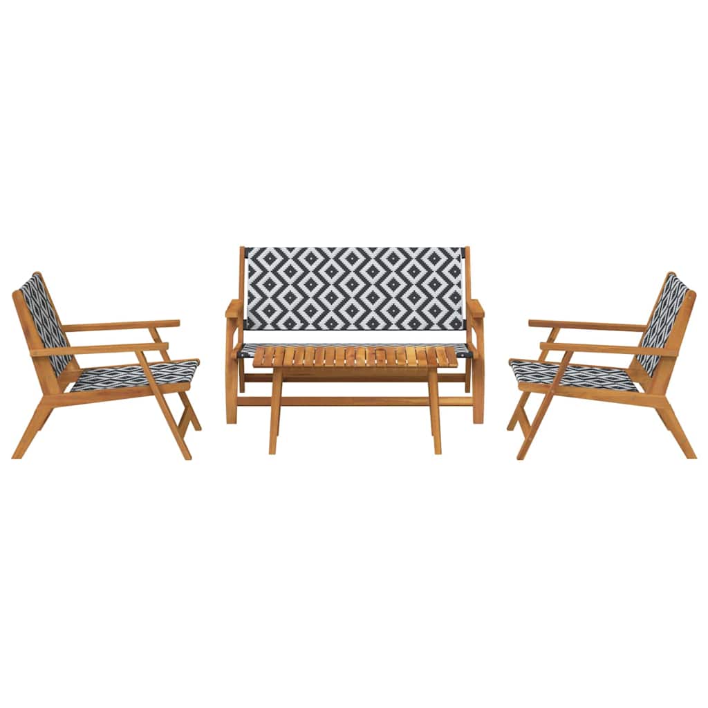 - Duurzaam massief acaciahout: De hele set, inclusief poten, frame en oppervlak, is gemaakt van massief acaciahout, dat bekend staat om zijn stevigheid. Dit betekent dat de meubels het weer kunnen weerstaan zonder hun charme te verliezen.