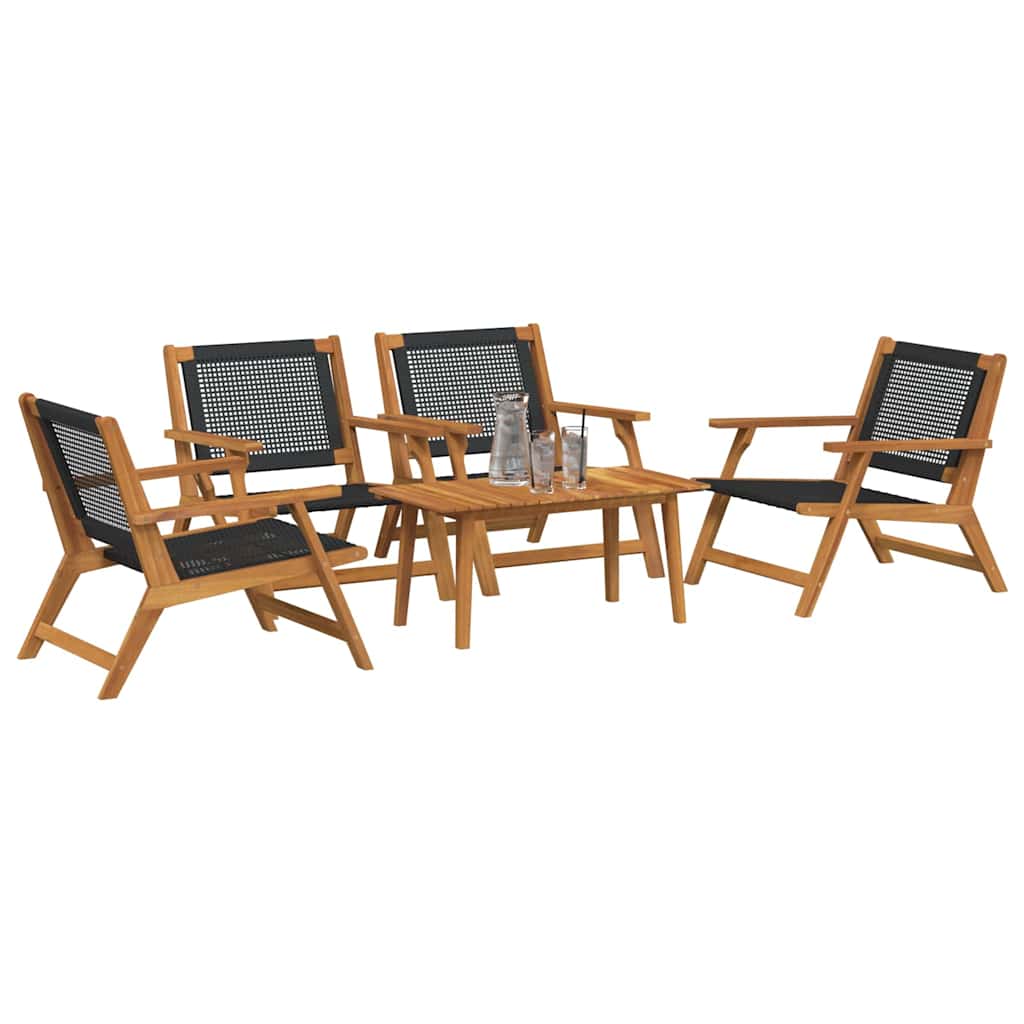 - Duurzaam massief acaciahout: De hele set, inclusief poten, frame en oppervlak, is gemaakt van massief acaciahout, dat bekend staat om zijn stevigheid. Dit betekent dat de meubels het weer kunnen weerstaan zonder hun charme te verliezen.