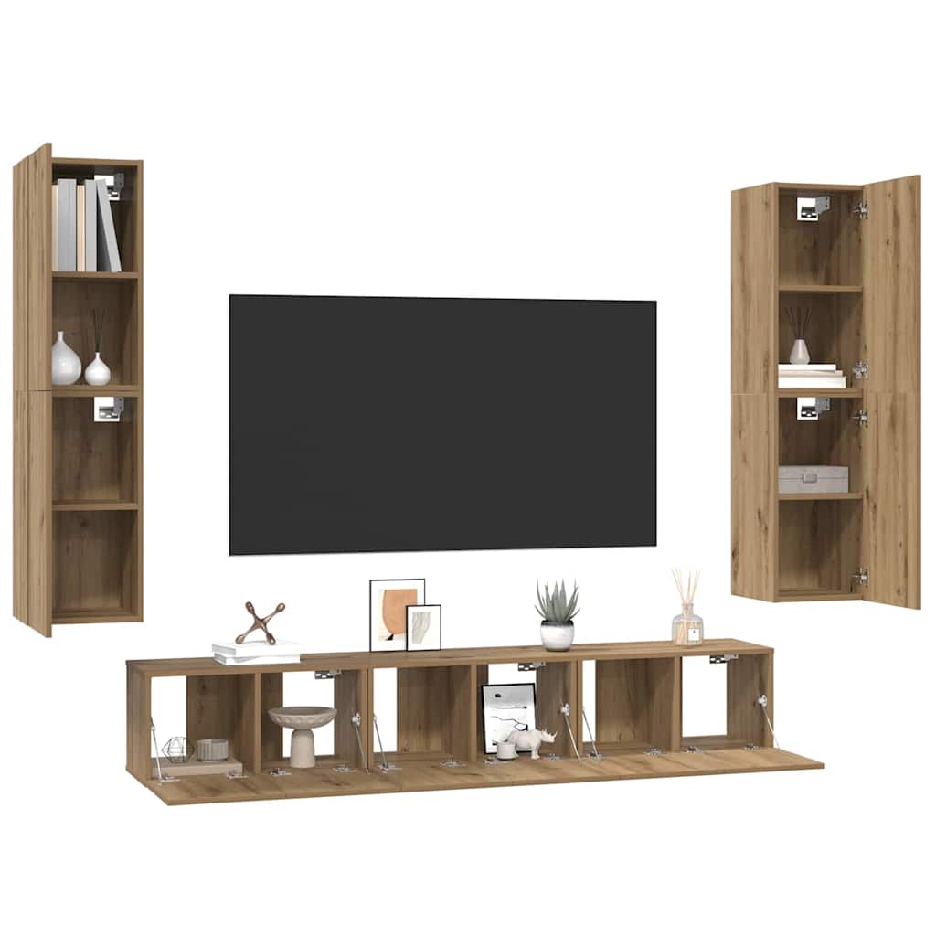 - Ruime Opslagopties: Door slimme indelingen heeft de kast veel ruimte voor van alles, van elektronica tot decoratieve items. De wandplanken zorgen ervoor dat je slim gebruikmaakt van de ruimte, terwijl je huis er netjes uitziet.