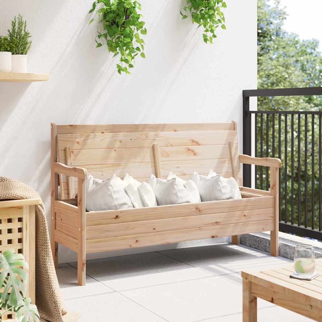 - Gebruikte Materialen: Gemaakt van massief grenenhout voor het frame, de zitting en de poten, biedt deze bank een stevige en duurzame basis. De warme bruine kleur geeft elke tuin of patio een opkikker en is bestand tegen dagelijks gebruik.