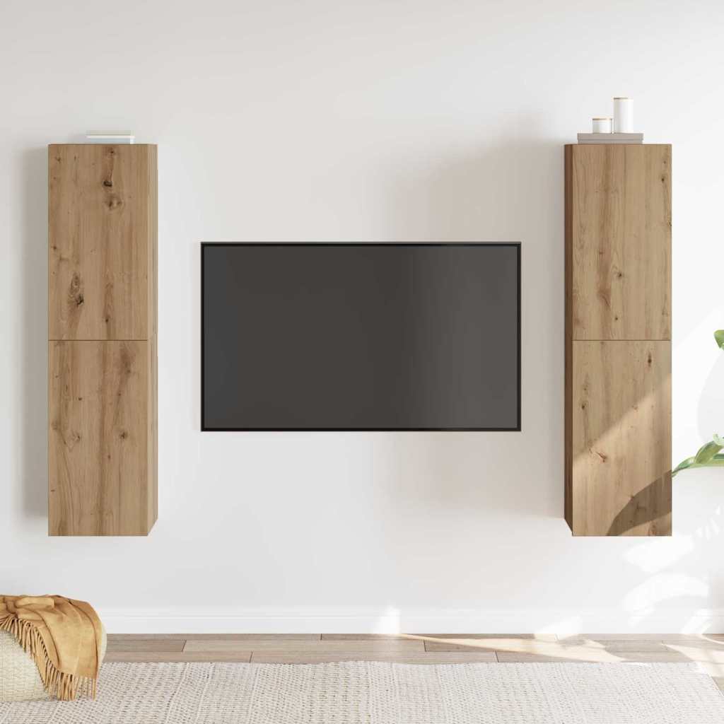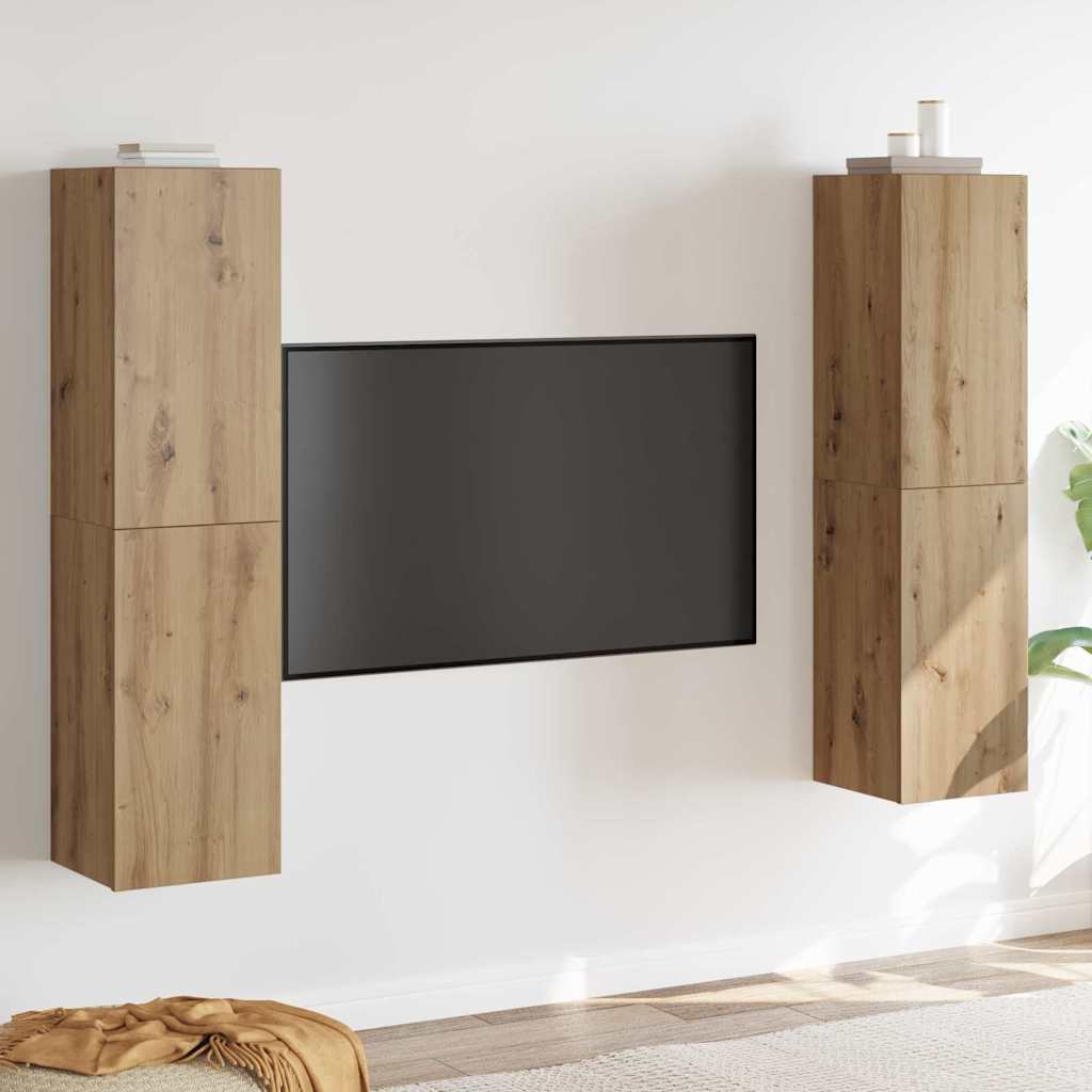 - Inclusief Onderdelen: De set bevat vier muur-gemonteerde tv-kasten die veel opslagruimte bieden zonder veel vloeroppervlak in te nemen. Elke kast heeft planken en scharnierdeuren van kwalitatief hout. Deze opstelling biedt praktische en stijlvolle meubels voor je media en decoratie. Daarnaast zijn de montage-instructies zo helder dat iedereen het kan monteren, wat echt handig is.
