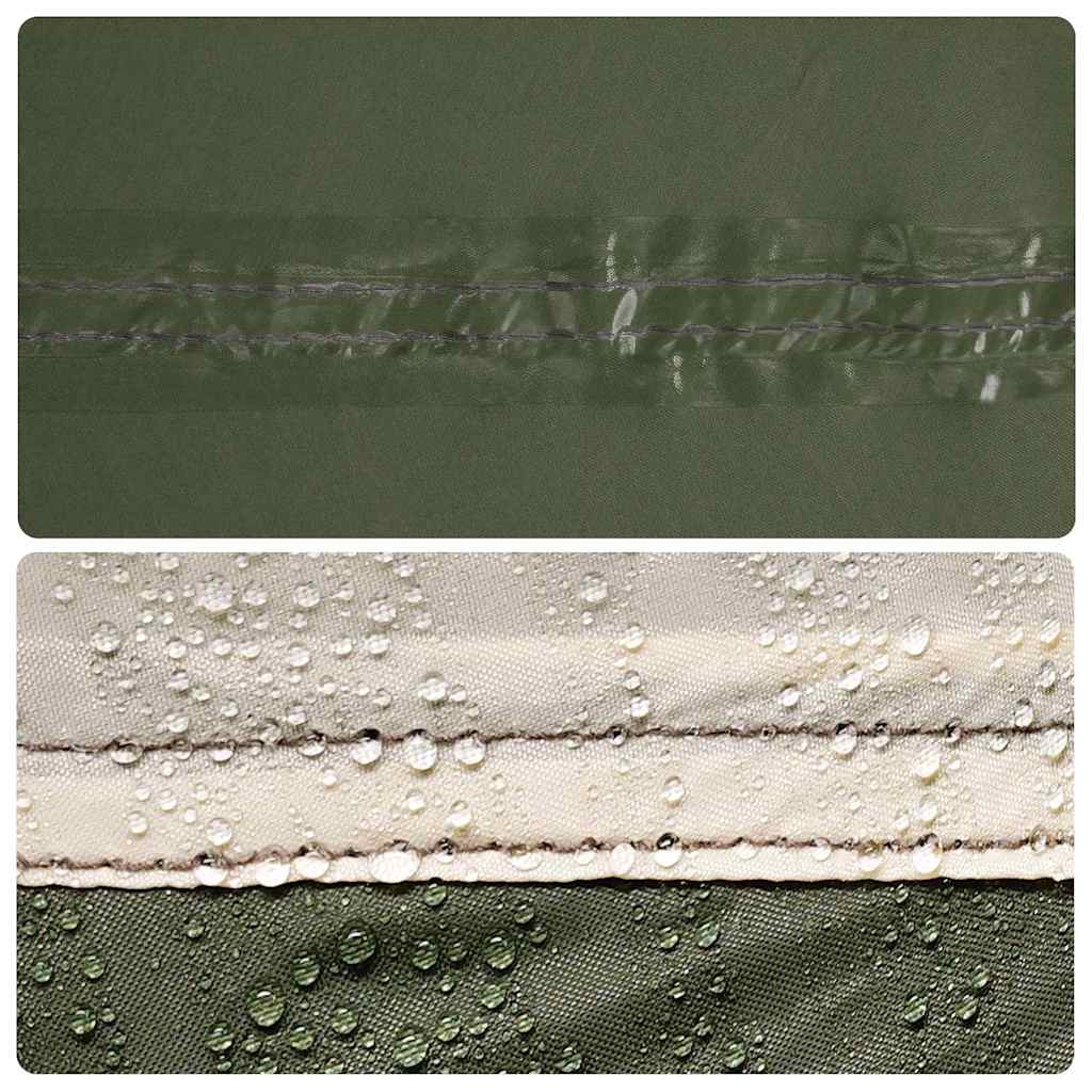 - Volledig waterdicht ontwerp: deze tent is gemaakt van polyester met een PU-coating en is waterdicht en windbestendig. De getapete naden voorkomen effectief het binnendringen van regenwater, terwijl het robuuste grondzeil helpt een droog en comfortabel interieur te behouden.