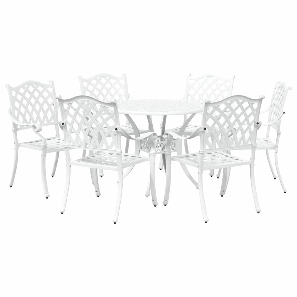 - Kwaliteitsmaterialen: Gemaakt van sterk gegoten aluminium, deze eetset is gebouwd om lang mee te gaan, weerstaat slijtage en blijft mooi, zelfs bij wisselend weer. Het aluminium frame zorgt voor stabiliteit en een mooi uiterlijk, wat bijdraagt aan de duurzaamheid.