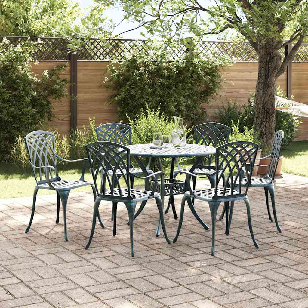 - Kwaliteitsmaterialen: Gemaakt van sterk gegoten aluminium, deze eetset is gebouwd om lang mee te gaan, weerstaat slijtage en blijft mooi, zelfs bij wisselend weer. Het aluminium frame zorgt voor stabiliteit en een mooi uiterlijk, wat bijdraagt aan de duurzaamheid.