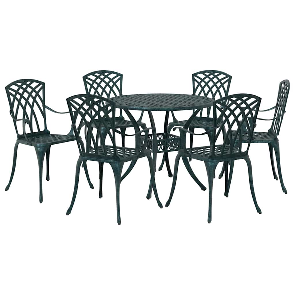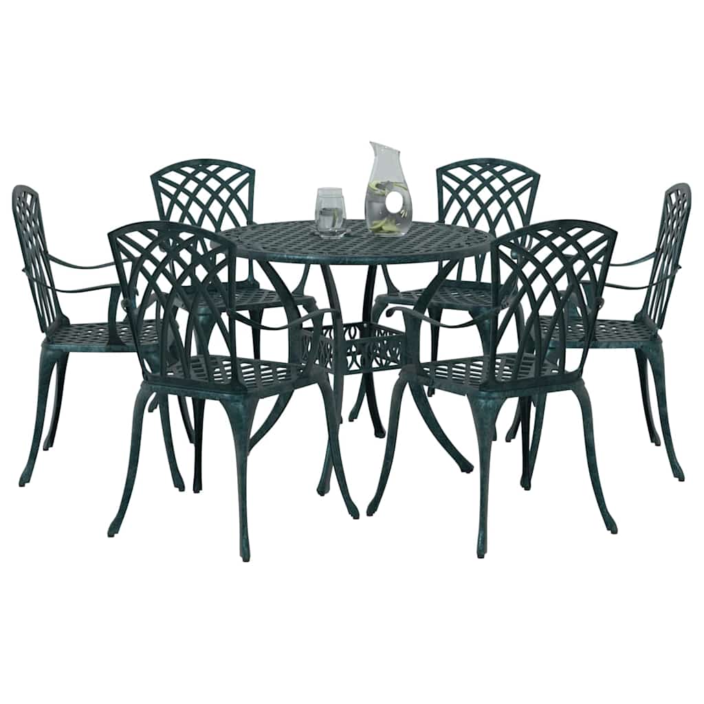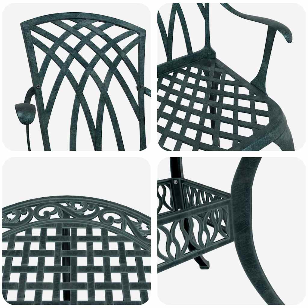 Deze mooie tuinset is gemaakt van sterk gegoten aluminium, wat het een klassieke look geeft die perfect past in je tuin of op je balkon. Het heeft klassieke details die wat verfijning meebrengen, waardoor het een prachtig middelpunt is voor buiten diners en bijeenkomsten in de lente en zomer. Stel je voor dat je gezellige avonden hebt met vrienden en familie, dineren onder de sterren, omringd door deze mooie mix van stijl en praktische gebruik!