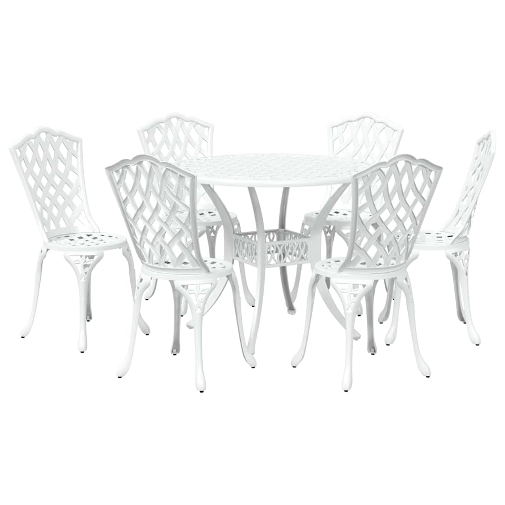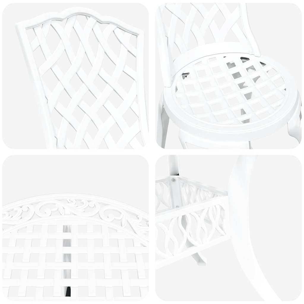 Deze mooie tuinset is gemaakt van sterk gegoten aluminium, wat het een klassieke look geeft die perfect past in je tuin of op je balkon. Het heeft klassieke details die wat verfijning meebrengen, waardoor het een prachtig middelpunt is voor buiten diners en bijeenkomsten in de lente en zomer. Stel je voor dat je gezellige avonden hebt met vrienden en familie, dineren onder de sterren, omringd door deze mooie mix van stijl en praktische gebruik!