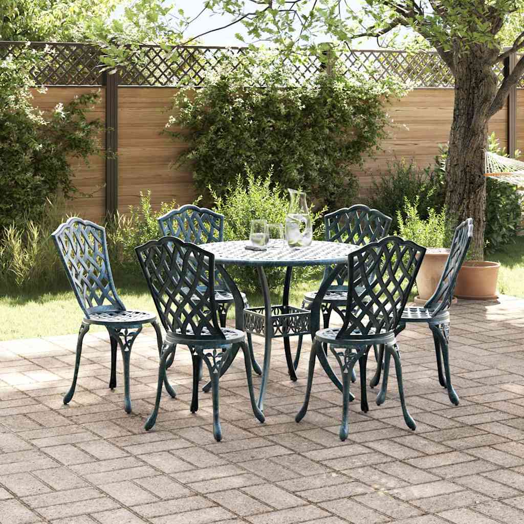 - Kwaliteitsmaterialen: Gemaakt van sterk gegoten aluminium, deze eetset is gebouwd om lang mee te gaan, weerstaat slijtage en blijft mooi, zelfs bij wisselend weer. Het aluminium frame zorgt voor stabiliteit en een mooi uiterlijk, wat bijdraagt aan de duurzaamheid.